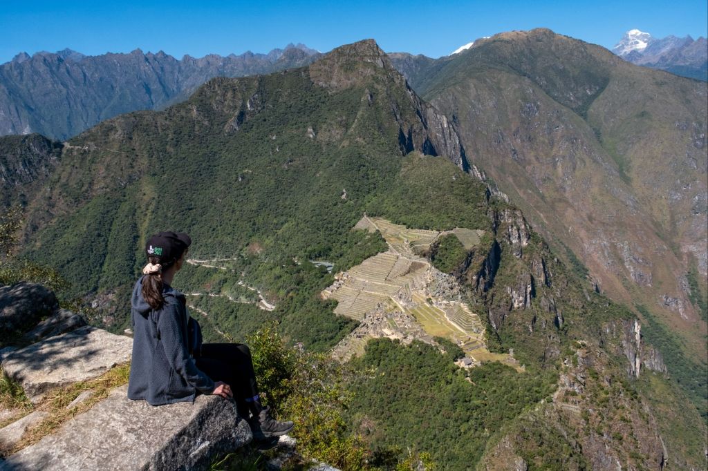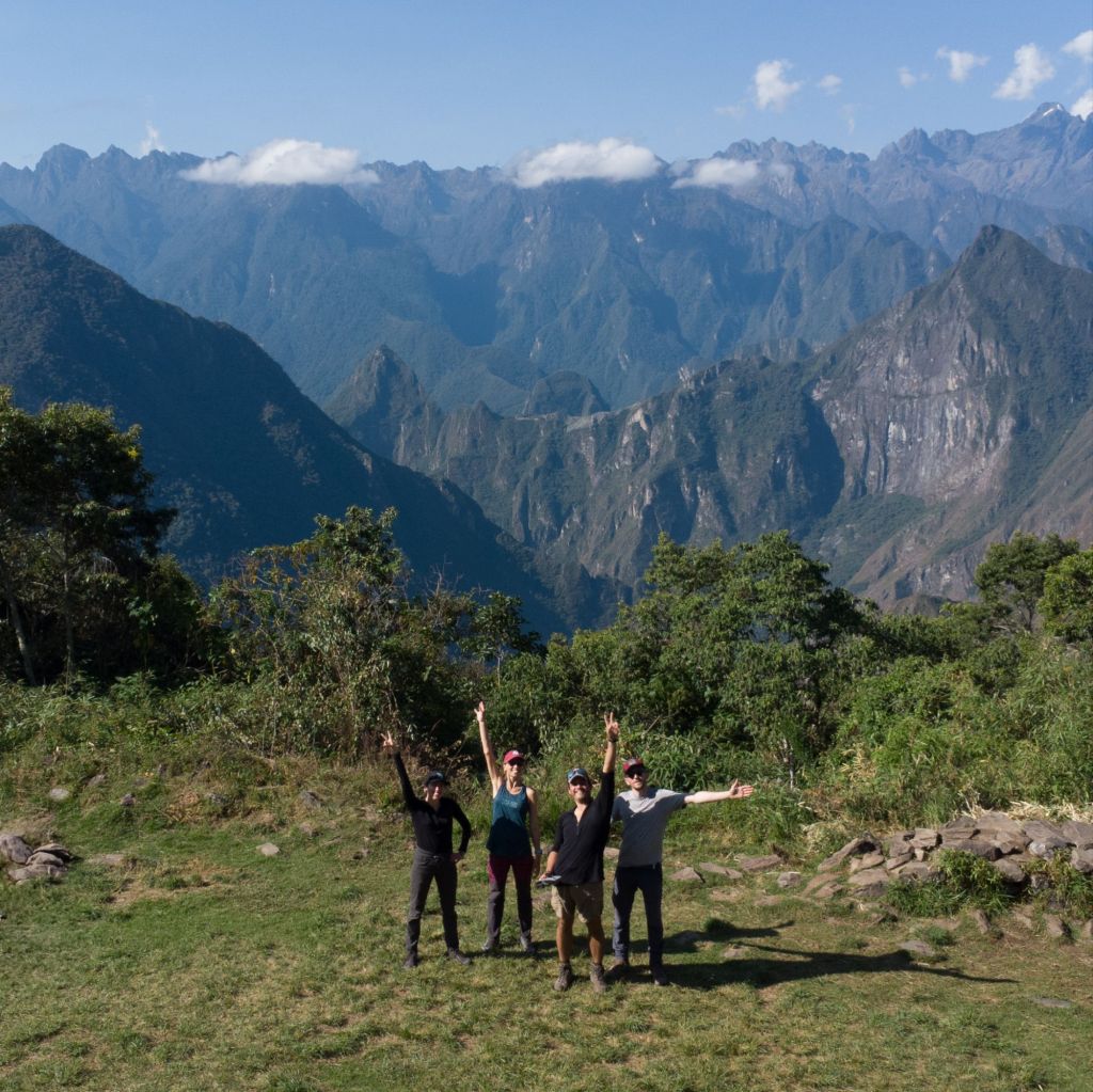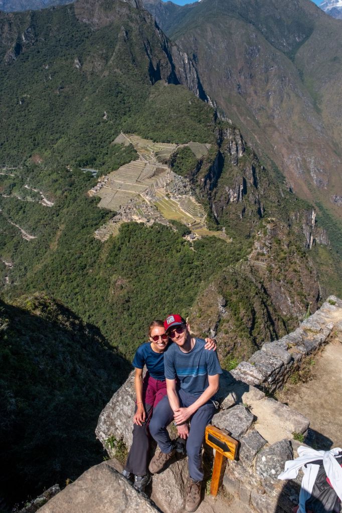 Arrivés au sommet, la vue est magnifique. Nous voyons toutes les montagnes à pic autour de nous, et surtout, juste en face : le fameux Machu Picchu !