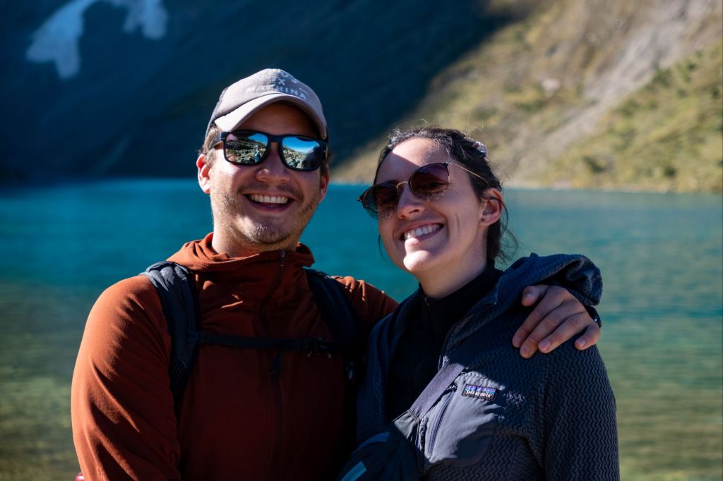 Après une grosse pause dans une petite prairie, une sieste et un Snickers, nous terminons la montée du col du Salkantay, à 4600m d’altitude. La vue est très belle mais le vent souffle. Nous immortalisons le moment et nous dépêchons de redescendre un peu pour manger nos sandwiches à l’avocat.