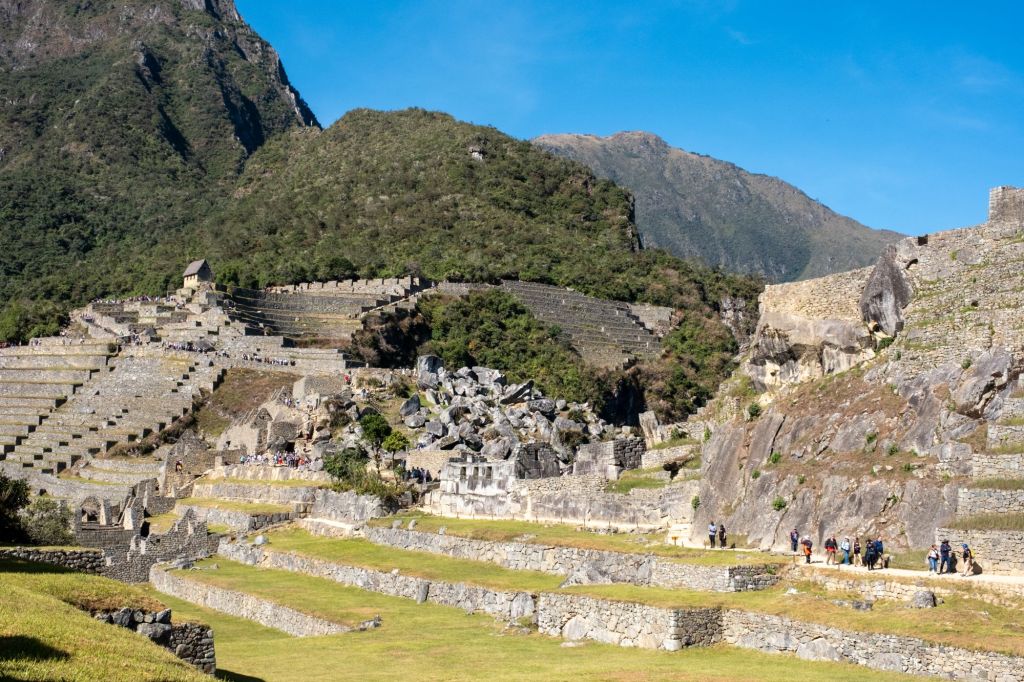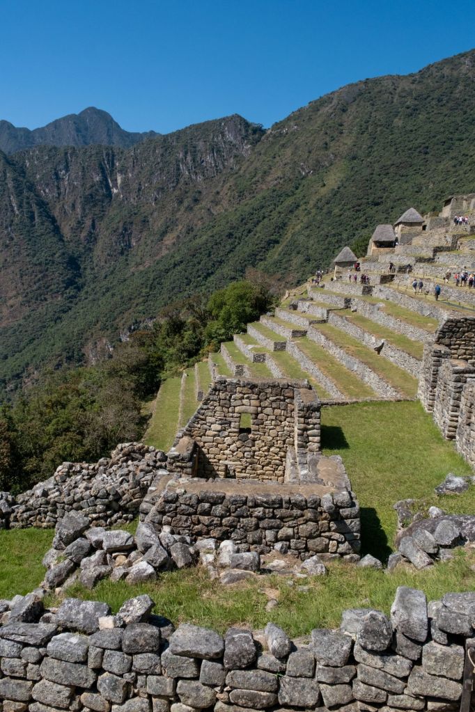 C’est une ancienne cité inca du XVème siècle, perchée sur un promontoire rocheux entouré d’impressionnantes montagnes. Elle fut découverte récemment, en 1911, par l’archéologue américain Hiram Bingham. Nous commençons la visite par la zone agricole, constituée de nombreuses terrasses servant à la culture de maïs, pommes de terre et divers légumes. Ces champs pouvaient nourrir toute la cité.