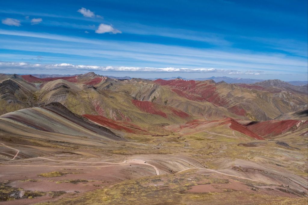 Nous arrivons sur le site de Palcoyo et le paysage est tout de suite époustouflant : la montagne est zébrée de couleurs allant du rouge au vert, c’est magnifique.