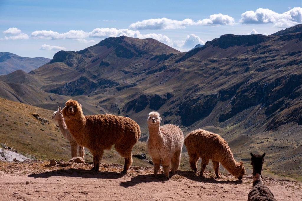 Nous quittons Cusco tôt ce matin, en taxi, pour se rendre à Palcoyo, l’alternative à la très touristique montagne des 7 couleurs (Vinicunca). Nous nous arrêtons en chemin dans un petit village pour acheter un petit pique-nique : sandwiches de fromage local, avocats et boîtes de thon (notre classico maintenant). Nous avons 3h30 de route, dont 1h30 sur une petite piste. La fin de la route est jolie, le paysage commence à devenir montagneux et les collines sont remplies d’adorables troupeaux d’alpagas.
