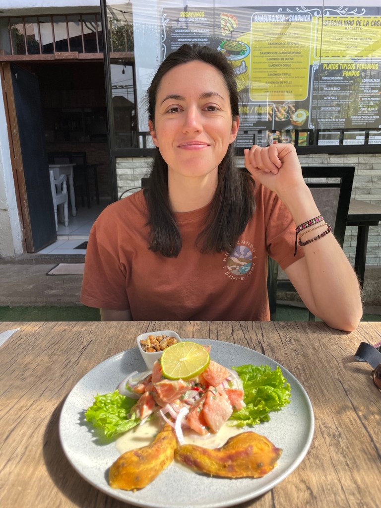 Nous allons déjeuner au Naupa Rumi cafe, un joli petit restaurant aux influences françaises, où nous retrouvent Justine et Benjamin. La terrasse est très jolie et nous y mangeons très bien : ceviche pour moi et pavé d’alpaga au fromage pour Guillaume. En dessert je craque pour une délicieuse fondue au chocolat !