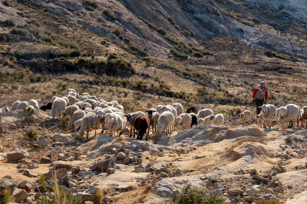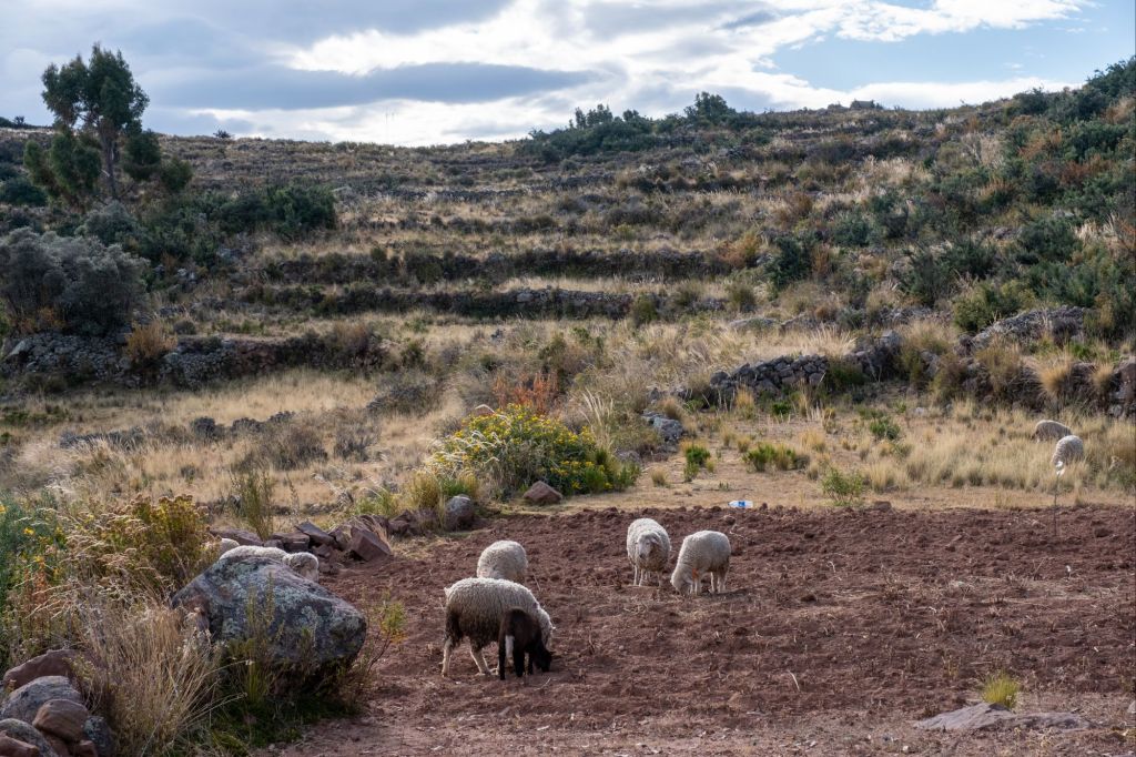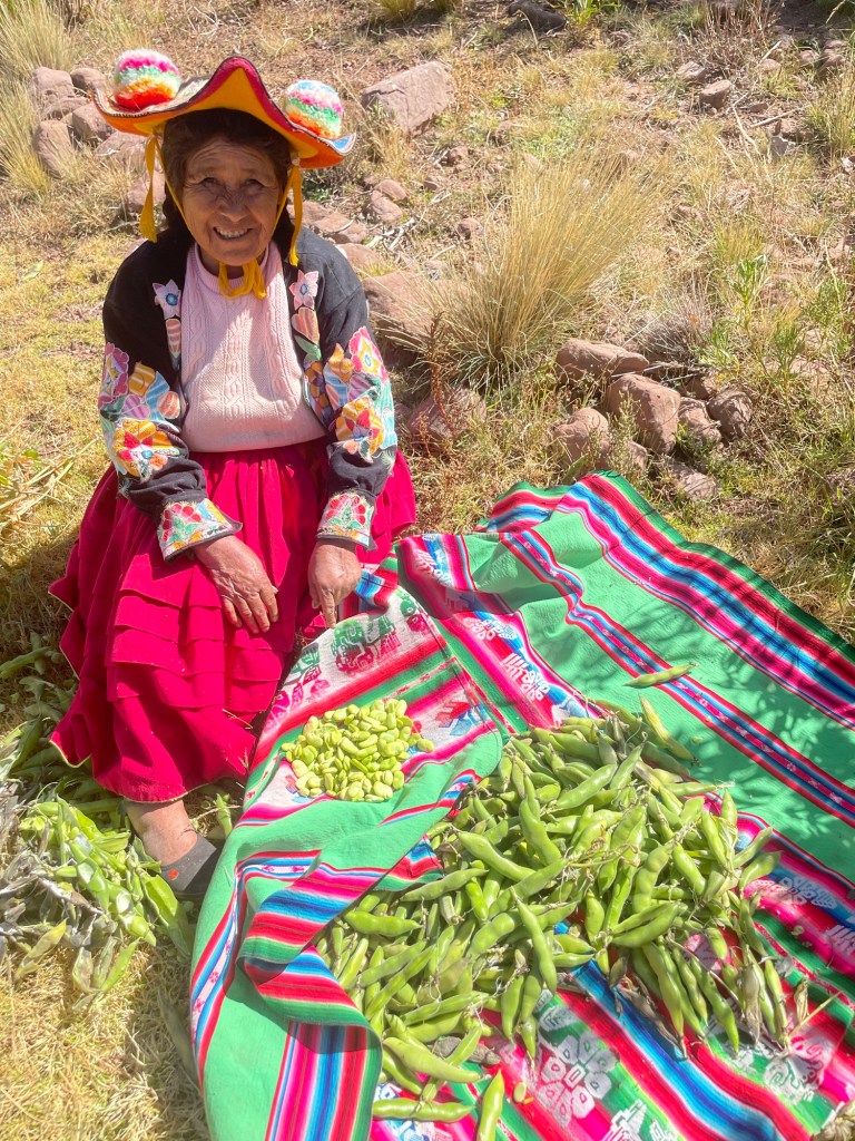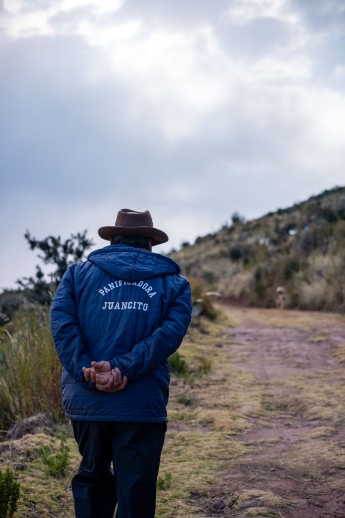 Tomas vient également nous montrer leurs outils artisanaux pour retourner la terre et s’occuper de leurs champs. À Llachon, les familles vivent de l’agriculture et du tourisme. Chaque famille a ses champs qu’elle cultive pour sa consommation personnelle (pommes de terre, maïs, pois, blé…), et ils n’achètent que les produits qu’ils ne cultivent pas ici (viande, riz, quelques légumes). Ils n’ont aucune machine, tous les travaux des champs se font donc à la main, et l’arrosage uniquement par la pluie.