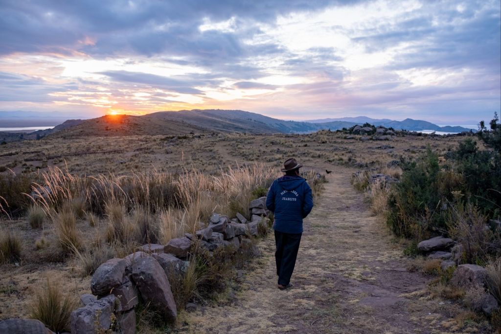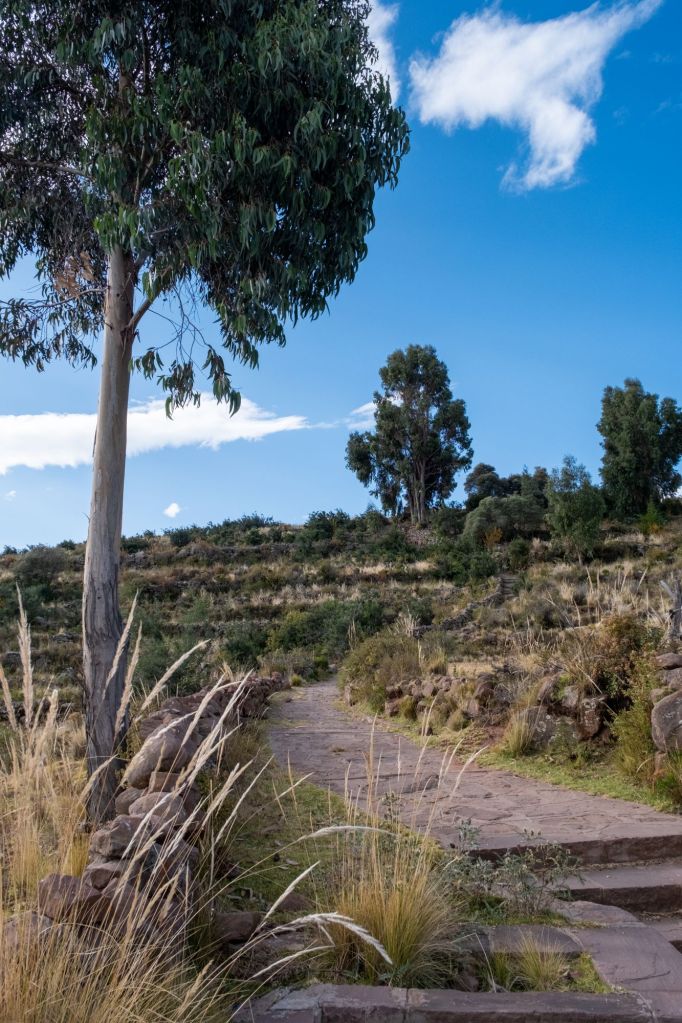 L’après-midi, Tomas nous emmène nous promener sur la colline au-dessus de la maison. Un joli petit chemin en pierre y grimpe, et nous avons une belle vue sur les îles alentour (Isla Taquile et Isla Amantani).