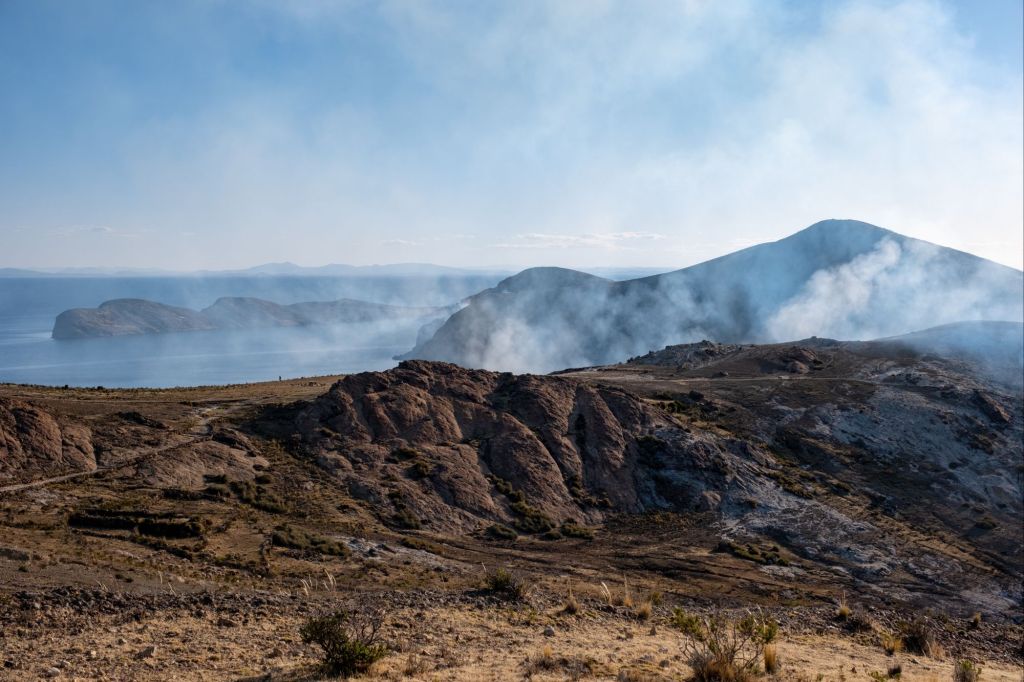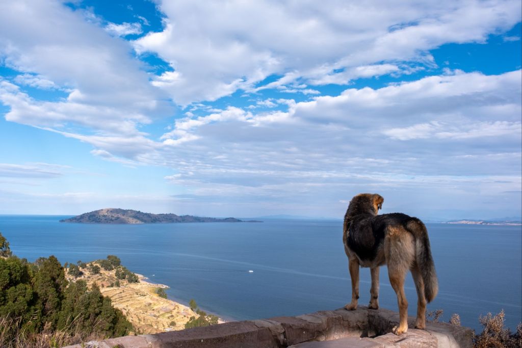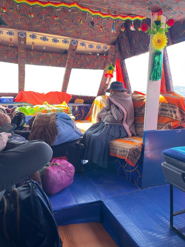 Nous prenons en début d’après-midi notre bateau pour l’Isla del Sol. Nous sommes sur un tout petit bateau aménagé avec des canapés à l’intérieur, qui n’avance pas très vite.