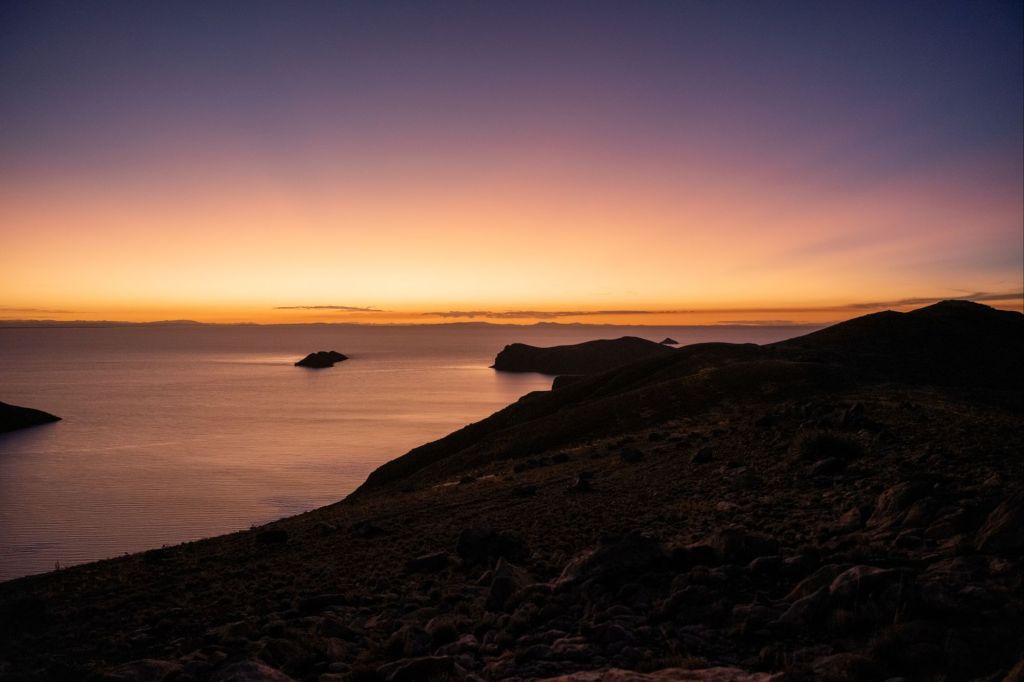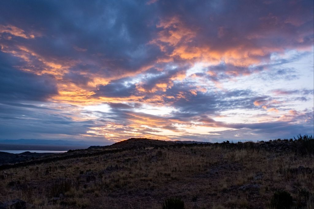 Nous prenons notre bus en début d’après-midi pour Puno, sur le bord du lac Titicaca, situé à 3850m d’altitude. Nous avons 6h de route, mais le bus est confortable et nous traversons des paysages très variés. Nous grimpons de plus en plus haut, pour atteindre un paysage lunaire de cailloux et de volcans. Puis, en se rapprochant du lac, nous arrivons sur un altiplano, c’est à dire un grand plateau situé en altitude, avec une végétation sèche d’herbes jaunies. Il fait déjà nuit quand nous arrivons aux abords du lac Titicaca.