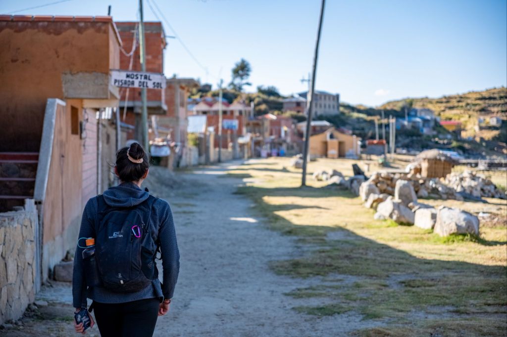 La traversée dure plus de 2h, pour atteindre la partie nord de l’île, où nous logeons. Nous posons nos affaires à l’hôtel (Hostal Inti Kala Uma), où nous avons une jolie petite chambre face au lac.