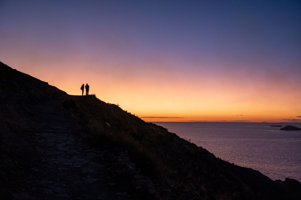 Nous sommes accompagnés par leur gros chien, très heureux de partir en balade ! Nous restons là-haut jusqu’au coucher du soleil, en discutant avec Tomas.