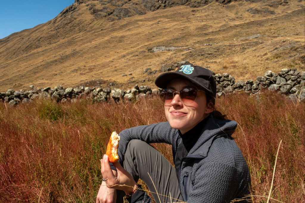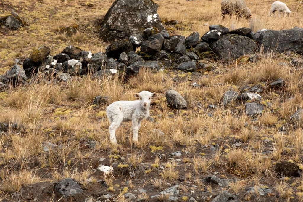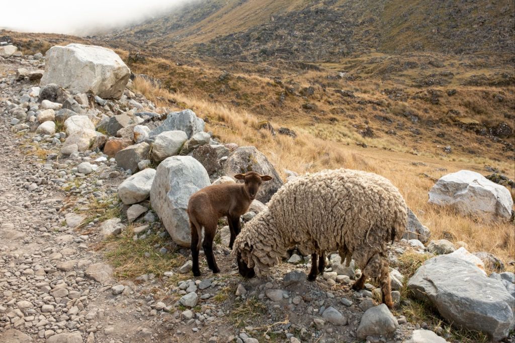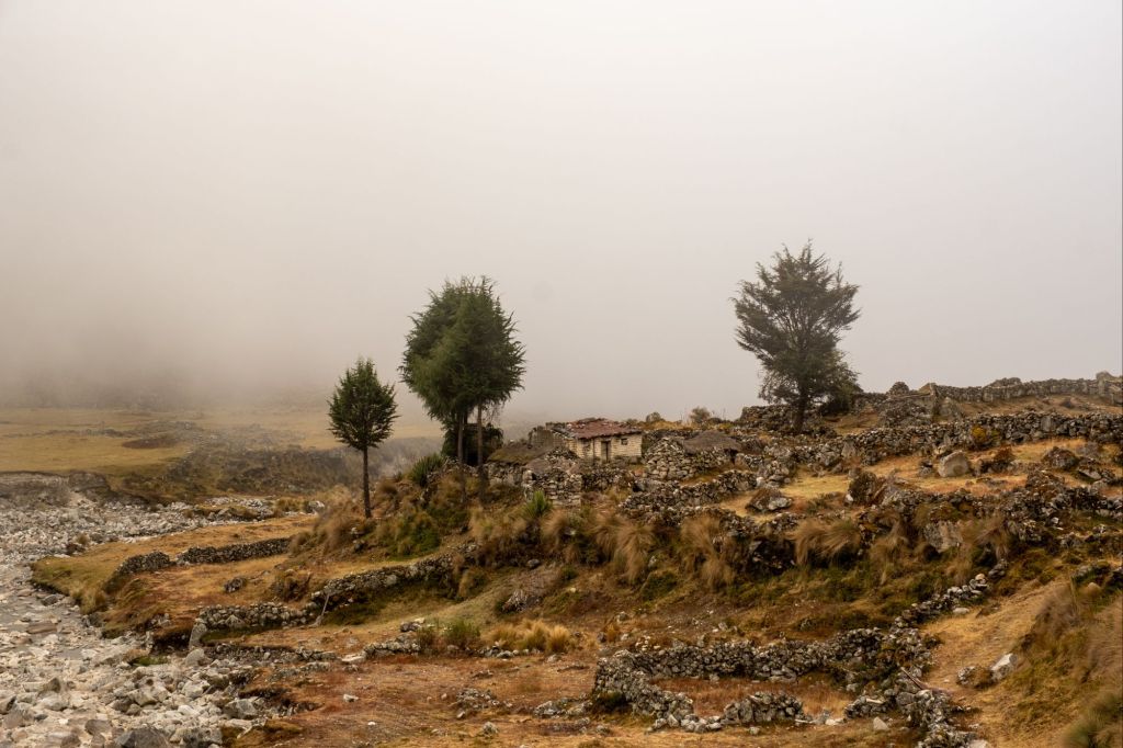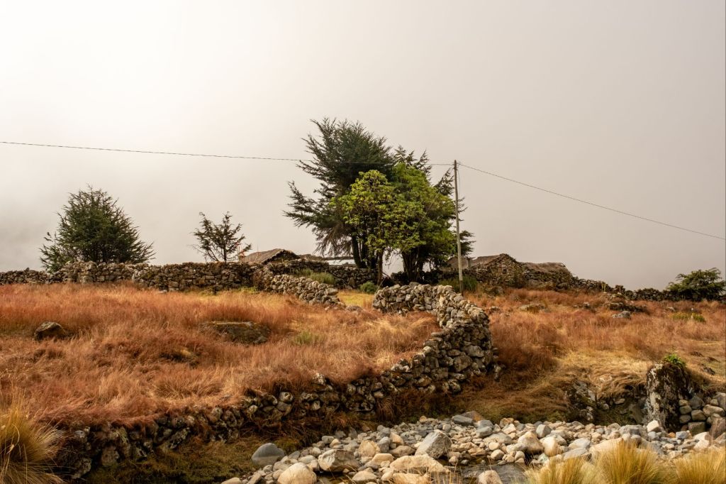 Au pied de notre abrupte descente, quelques ruines (incas peut-être ?) sont posées dans les herbes. Nous nous arrêtons déjeuner derrière un petit muret, à l’abri du vent, de délicieux empañadas achetés la veille. Après une petite sieste au soleil, nous repartons. Nous traversons, au milieu des nuages, un petit village où les quelques habitant nous saluent très gentiment.