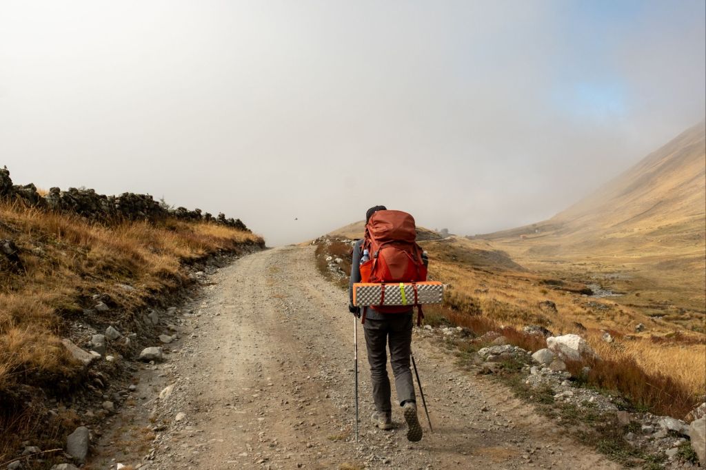 La suite du sentier ne fera que descendre jusqu’à la fin du trek. Nous entamons la descente dans un magnifique paysage de roches noires et d’herbes jaunes à perte de vue. Nous avons vue sur la vallée dans laquelle nous allons descendre pour nos 3 jours.