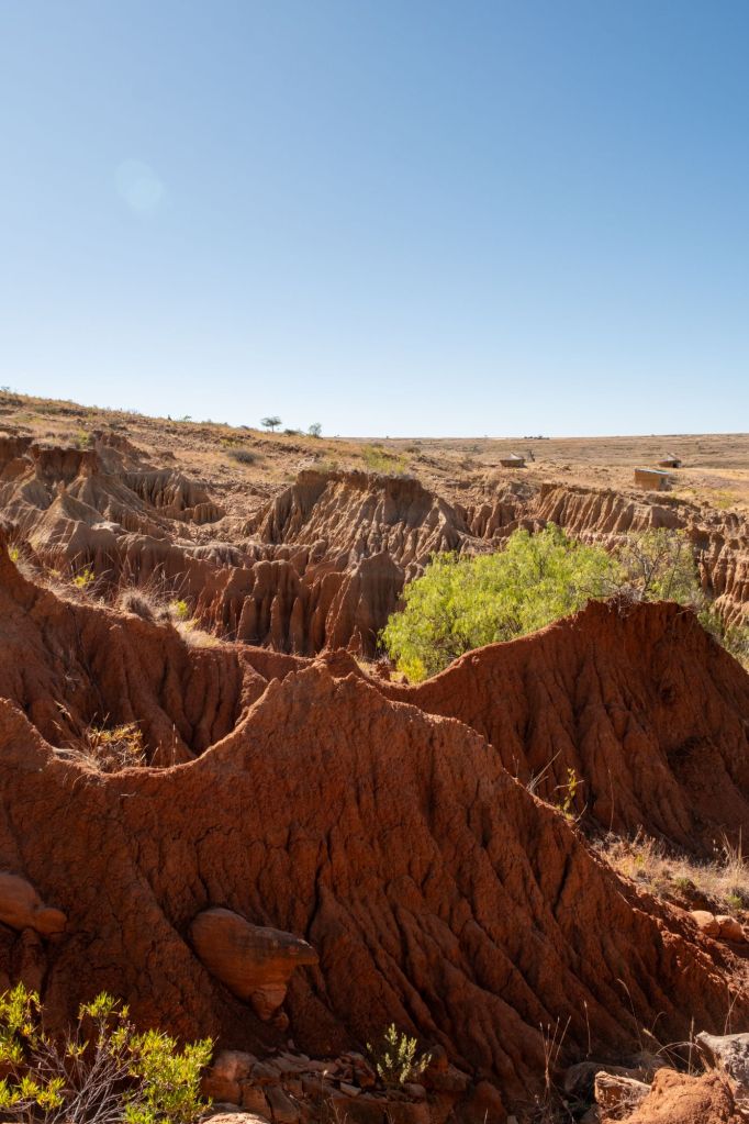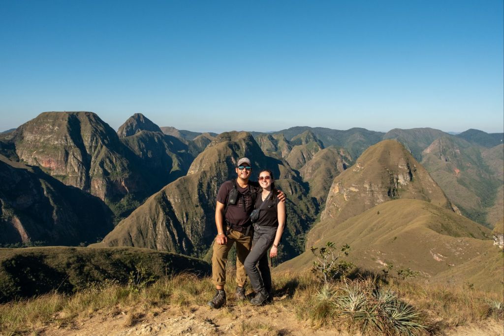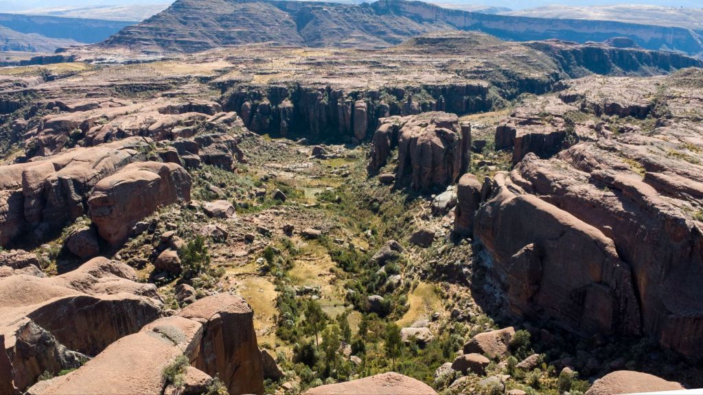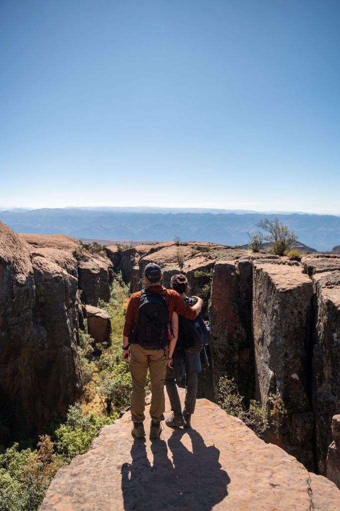 Nous arrivons rapidement au mirador de la randonnée, d’où nous pouvons voir tout le parc Amboro. Il se caractérise par des montagnes abruptes de roche brune-rouge avec un plateau recouvert de végétation sur le dessus. C’est magnifique !