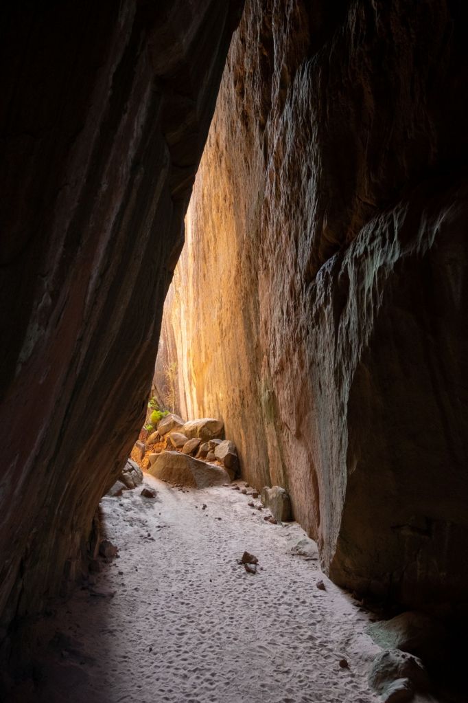 Nous continuons notre promenade en direction du canyon del Vergel, où nous accédons en traversant une caverne. De l’autre côté, nous sommes au cœur d’un étroit canyon verdoyant, c’est magnifique !