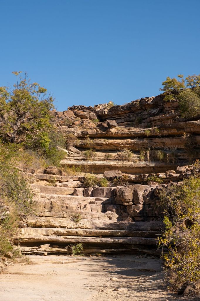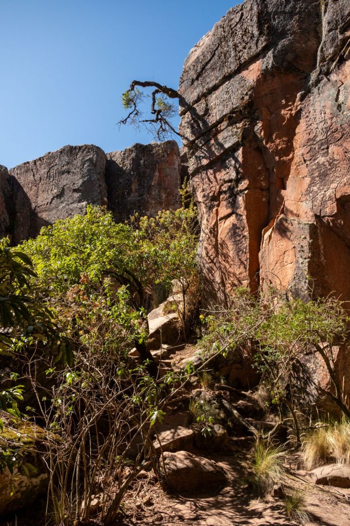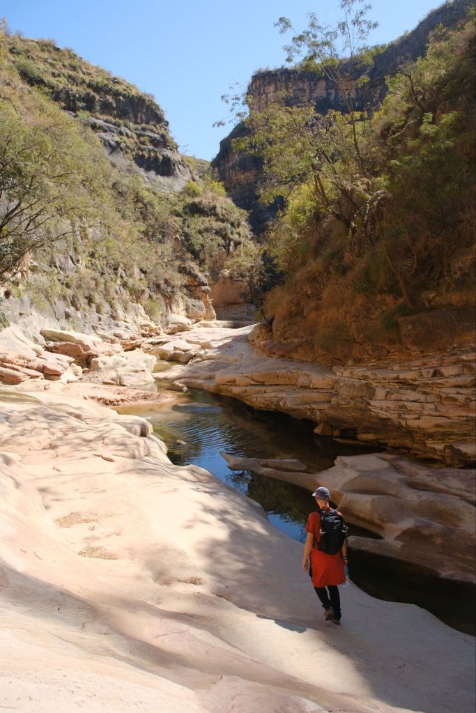 Le reste de la randonnée continue en descente dans la vallée, au bord d’une petite rivière, sur un chemin de terre rouge. Nous arrivons ensuite à une série de 3 jolies petites cascades dans lesquelles il est possible de se baigner. Le soleil a déjà quitté la vallée et il commence à se faire tard, nous ne nous attardons donc pas.