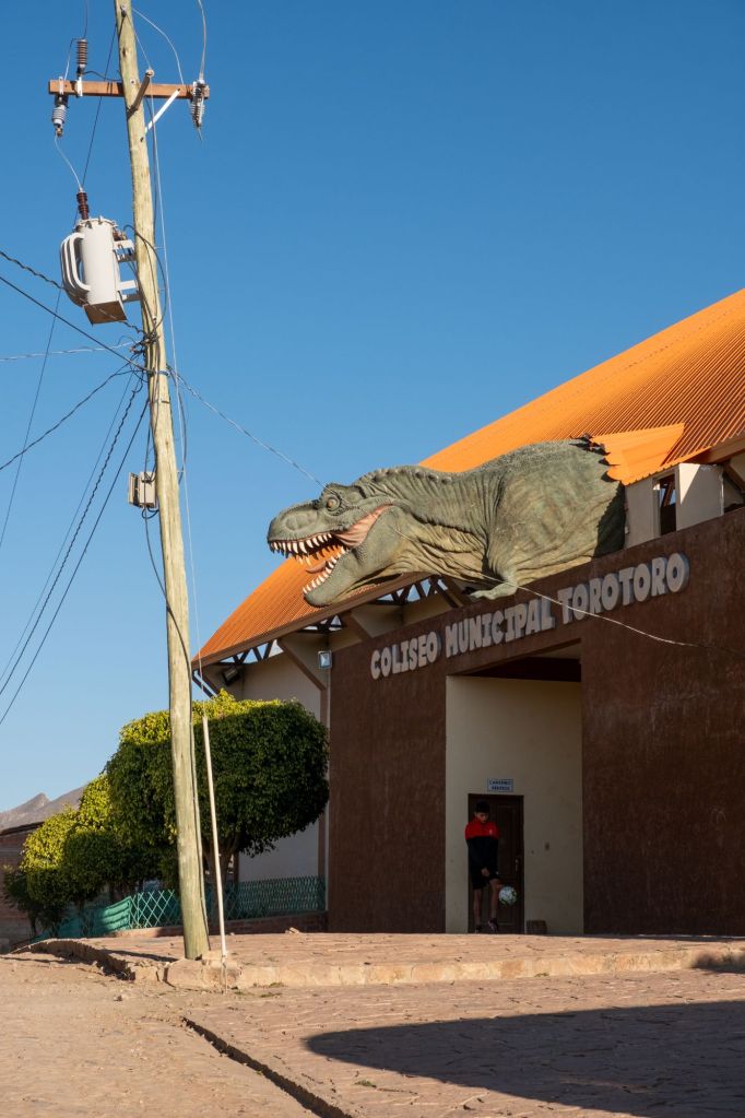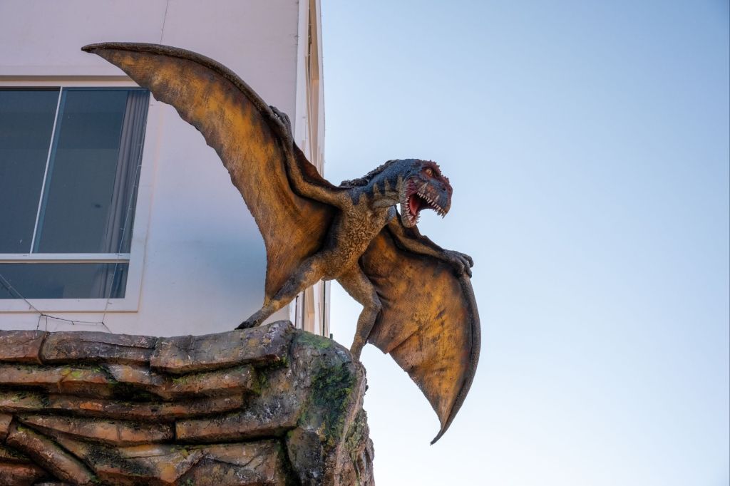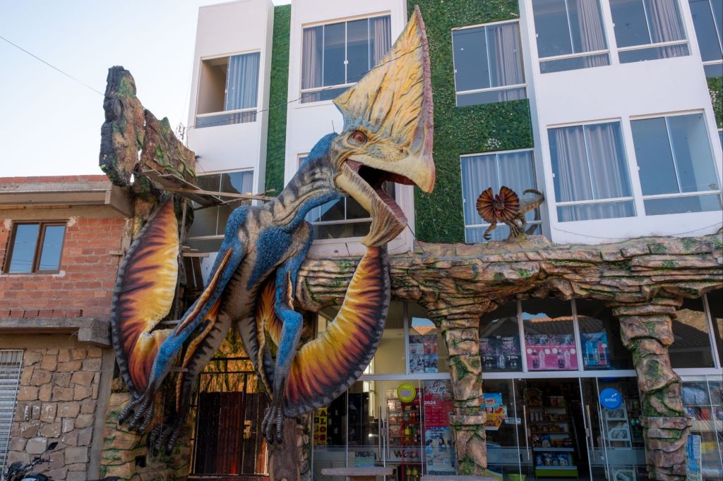 Nous allons nous promener dans le village pour s’acheter de quoi cuisiner (quelques légumes, des pâtes et un morceau de fromage). Tous les hôtels et les bâtiments sont à l’effigie des dinosaures, c’est le thème majeur ici.