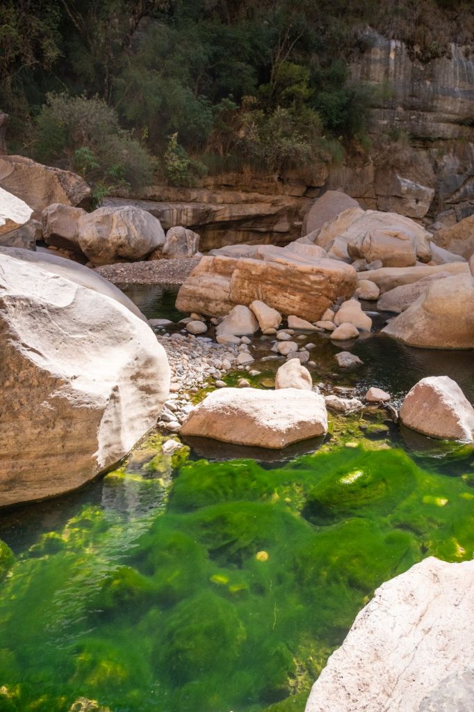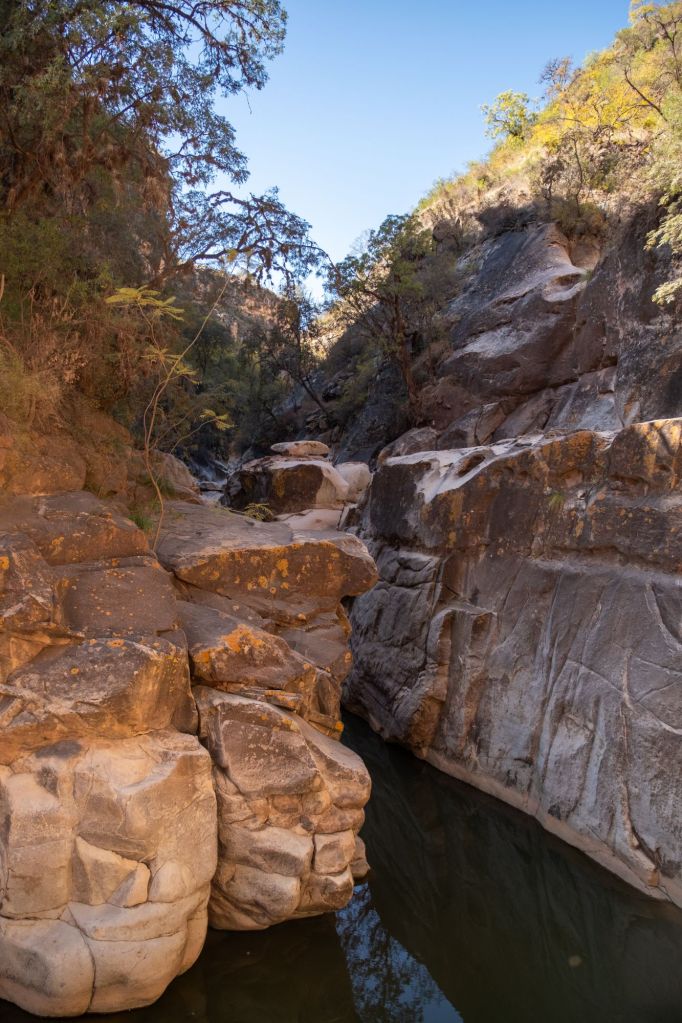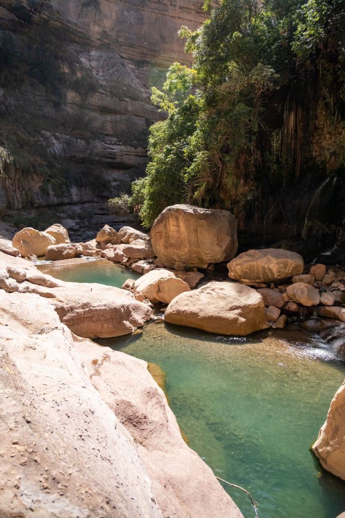 Nous descendons tout au fond du canyon, où coule une jolie rivière agrémentée de petites cascades. Nous pique-niquons au bord de l’eau et nous baignons dans l’eau fraîche. Il faut dire que le soleil tape et il fait bien chaud dans le canyon, la baignade est très agréable.
