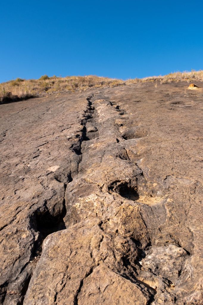 Juste avant de rentrer, nous allons voir d’autres empreintes de dinosaures situées juste à côté du village. Nous y trouvons également des fossiles de griffes de dinosaures.