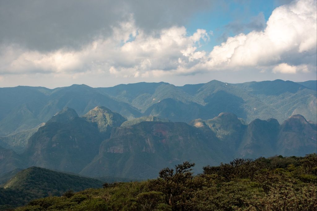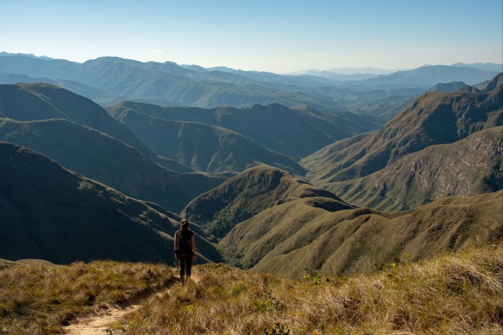 Nous continuons de grimper et la végétation change : nous sortons de la forêt, les arbres se transforment en bosquets et la température se fait plus fraîche et moins humide. Le panorama, voilé de fumée, s’offre à nous. Le guide nous explique que la zone du parc se trouve sur la route d’une « rivière de nuage », ce qui donne ce microclimat particulier et humide à la forêt. La fumée, elle, est due à des feux à plusieurs dizaines de kilomètres d’ici, déclenchés par les fermiers pour nettoyer leurs terrains.