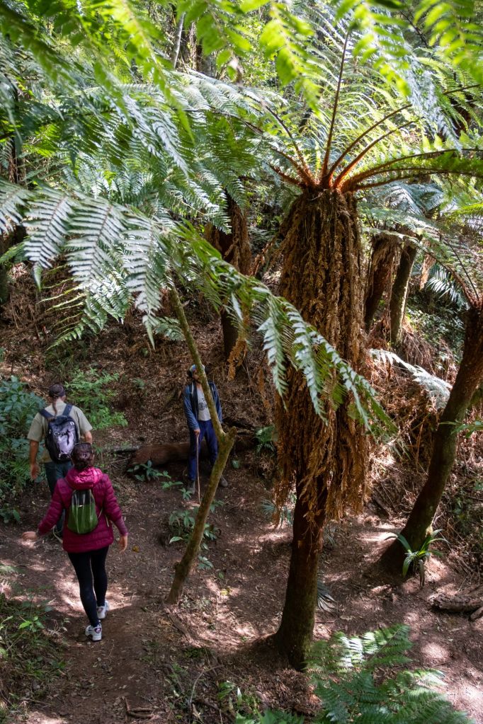 Un peu plus loin, nous entrons dans une forêt de fougères arborescentes (sous forme d’arbres donc), de plusieurs centaines d’années. Cette espèce de fougère date de l’époque des dinosaures, et est l’une des plus anciennes espèces de plantes encore présente sur cette Terre. Elle grandit d’1 à 2cm par an, et toutes ces fougères de la taille d’un arbre ont donc entre 500 et 1000 ans, impressionnant !