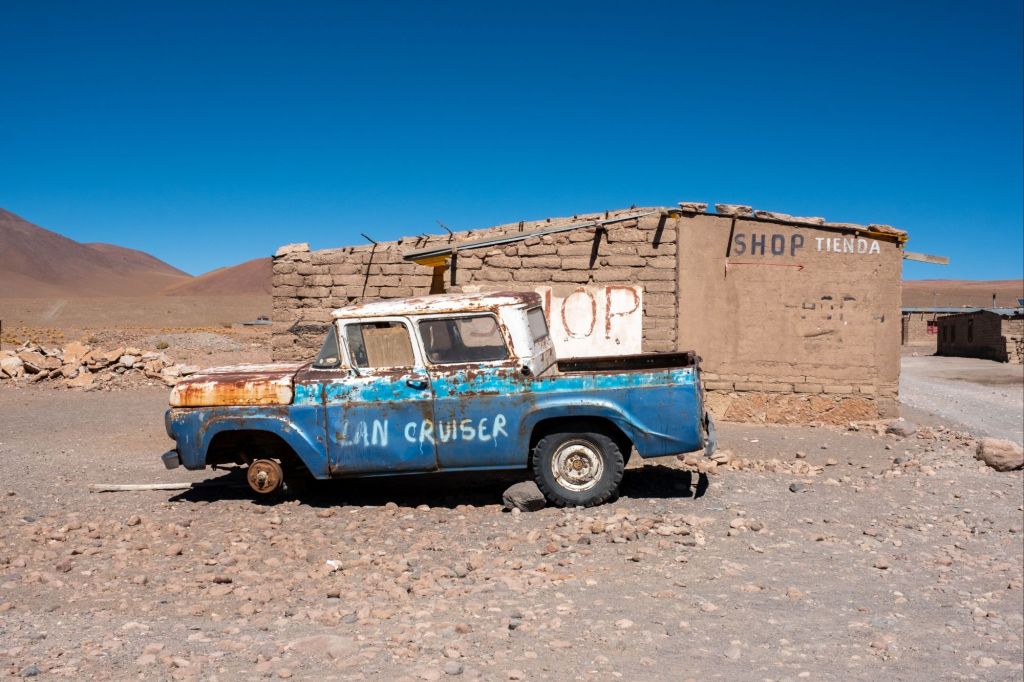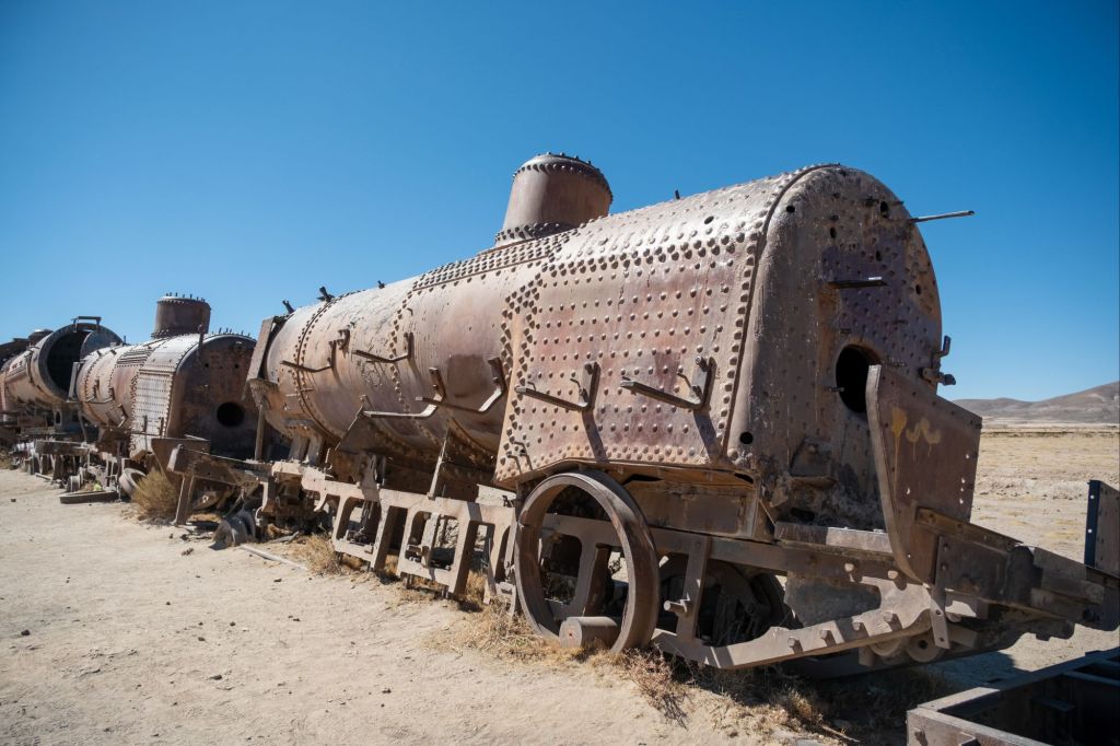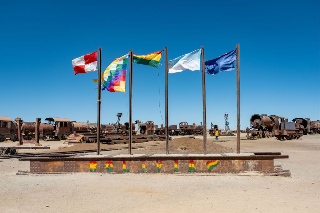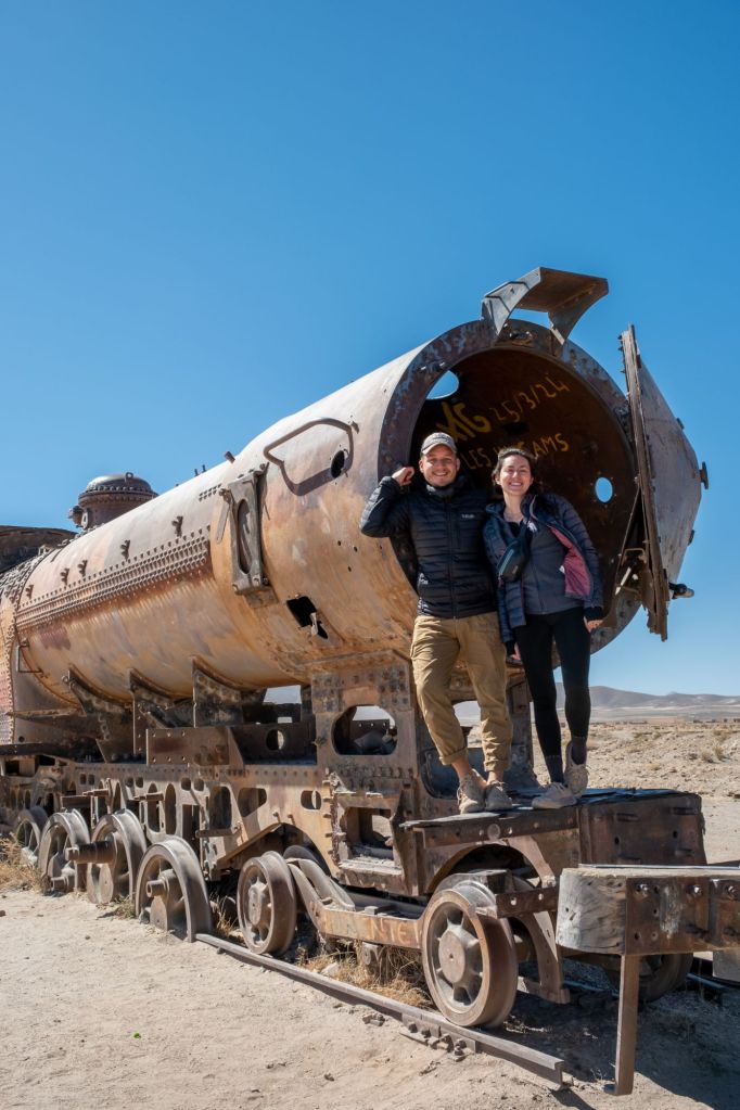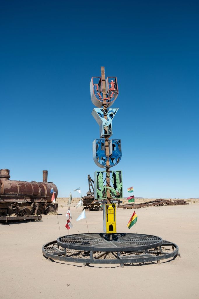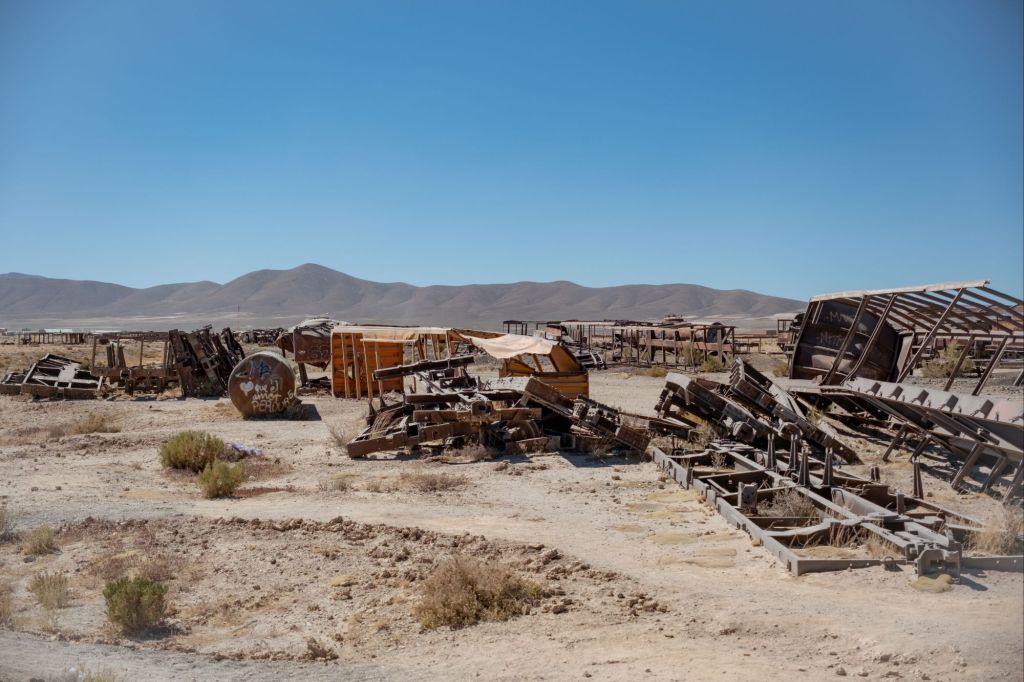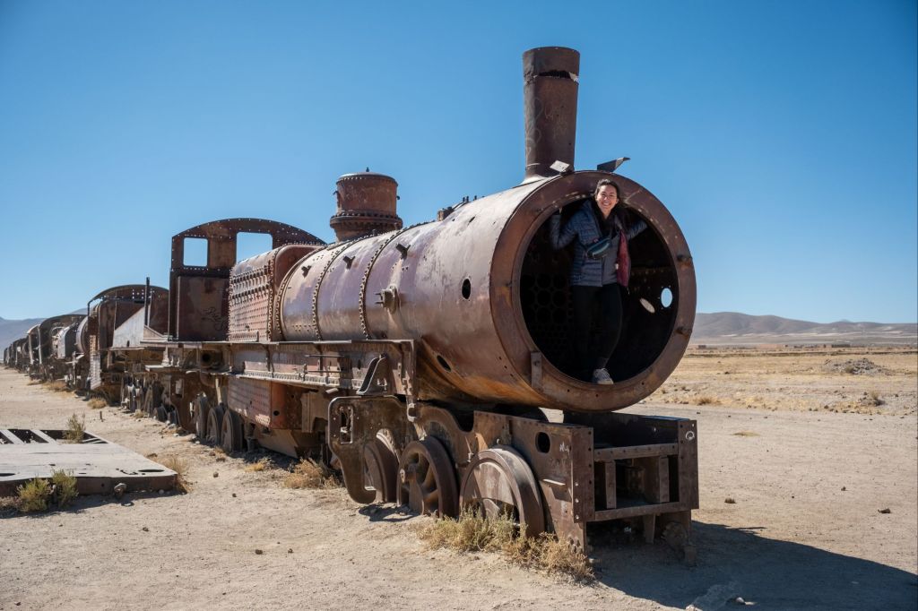 Notre premier arrêt a lieu au cimetière de trains d’Uyuni. Le lieu a une atmosphère très particulière avec ses dizaines de vieilles locomotives rouillées qui s’y entassent depuis des années. La ville était autrefois un carrefour prospère en raison de l’activité minière du pays.