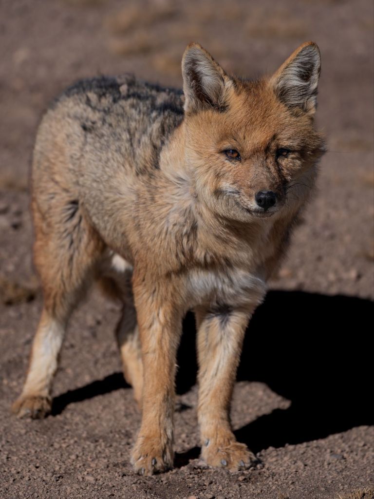 La suite de la route se fait sur une piste traversant le désert. Tout est de plus en plus aride, aucune végétation ne pousse, et nous croisons un petit renard en quête de nourriture sur la route.