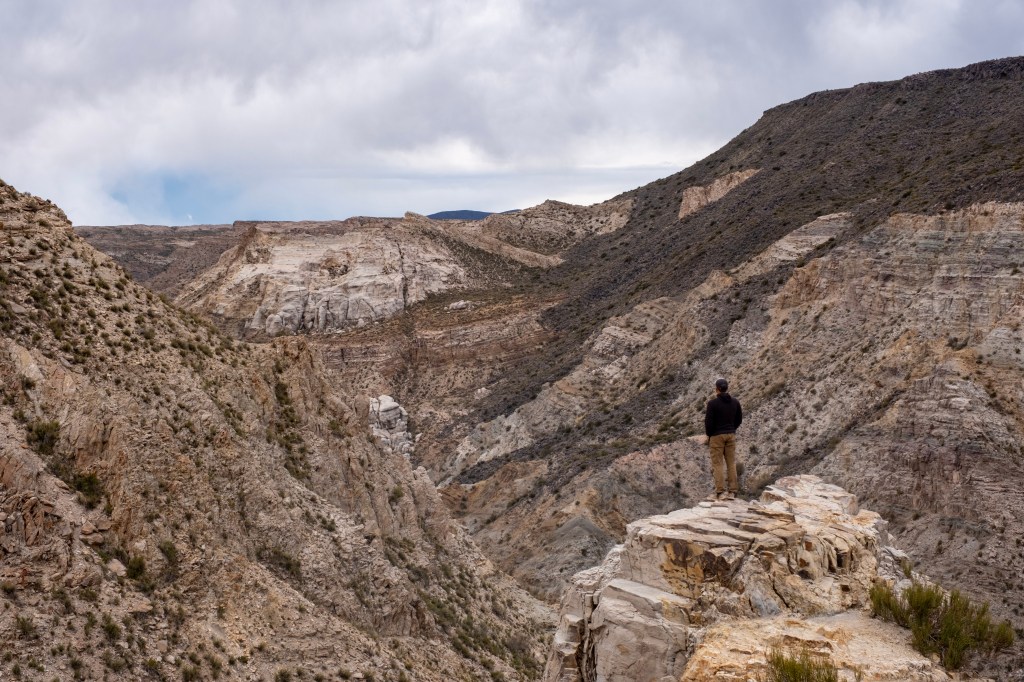 Nous terminons le canyon dans la petite ville de El Nihuil, au pied d’un énorme barrage et son grand lac. Un peu plus loin, nous apercevons les sommets enneigés du Cerro Nevado. Nous rentrons dans notre petite cabane et cuisinons notre repas du soir : aligot et épinards, miam !