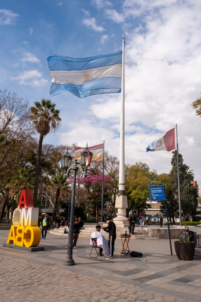 Après une courte nuit, nous arrivons à Córdoba, cité étudiante par excellence, et l’une des plus grandes villes du nord de l’Argentine. Nous tentons d’aller poser nos affaires à l’hôtel initialement réservé, mais tout est fermé et personne n’est là pour nous ouvrir… Nous nous réfugions dans un petit café avec tous nos sacs et prenons un énorme petit-déjeuner. Nous y rencontrons un couple d’argentins adorables avec qui nous avons discuté, et qui ont même prié pour nous et le bon déroulement de notre voyage !