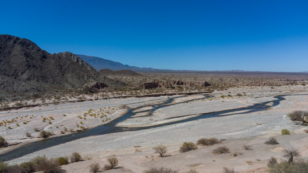 Nous découvrons cette fois la route entre San Antonio et Salta, que nous avions faite de nuit. Nous roulons dans un canyon désertique où coule une petite rivière. La route est bordée de cactus, c’est très joli.