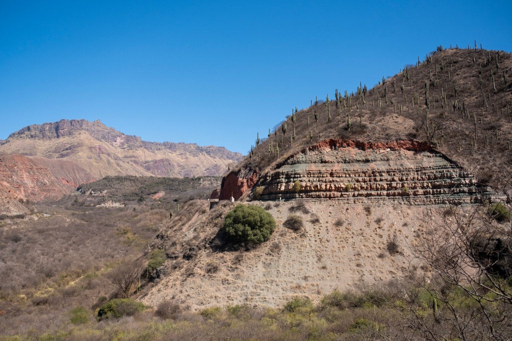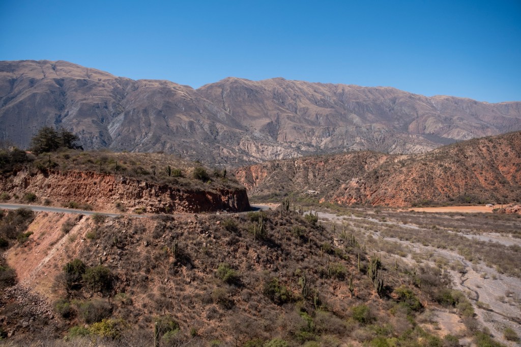 Nous partons aujourd’hui sur la boucle Sud de Salta, avec notre Logan de location et ses 5 rustines (celle qu’Antoine et Laurie, rencontrés au Salar, ont louée et éprouvée). Nous roulons une bonne heure avant de commencer à grimper dans la montagne. La roche devient plus rouge, et les cactus commencent à apparaître sur le bord de la route. Nous nous arrêtons sur plusieurs points de vue sur le canyon, c’est de plus en plus beau.