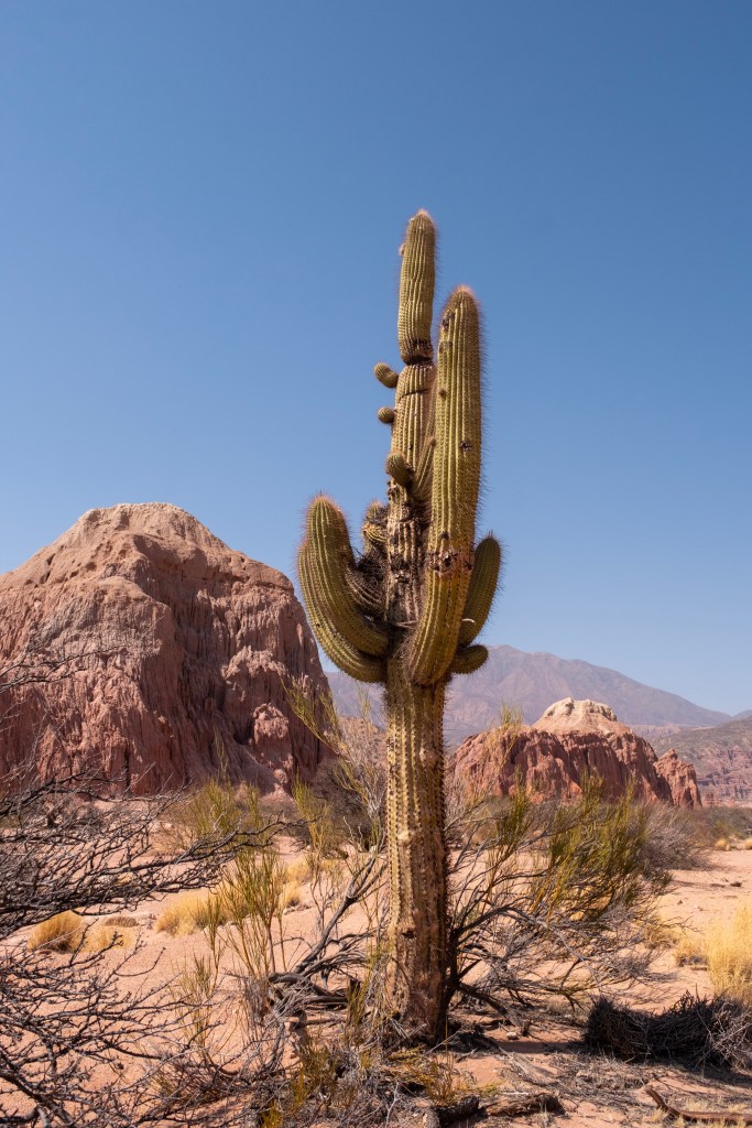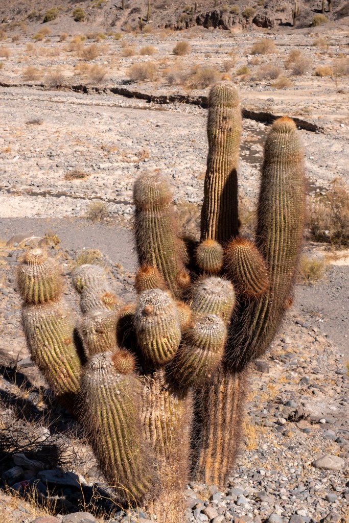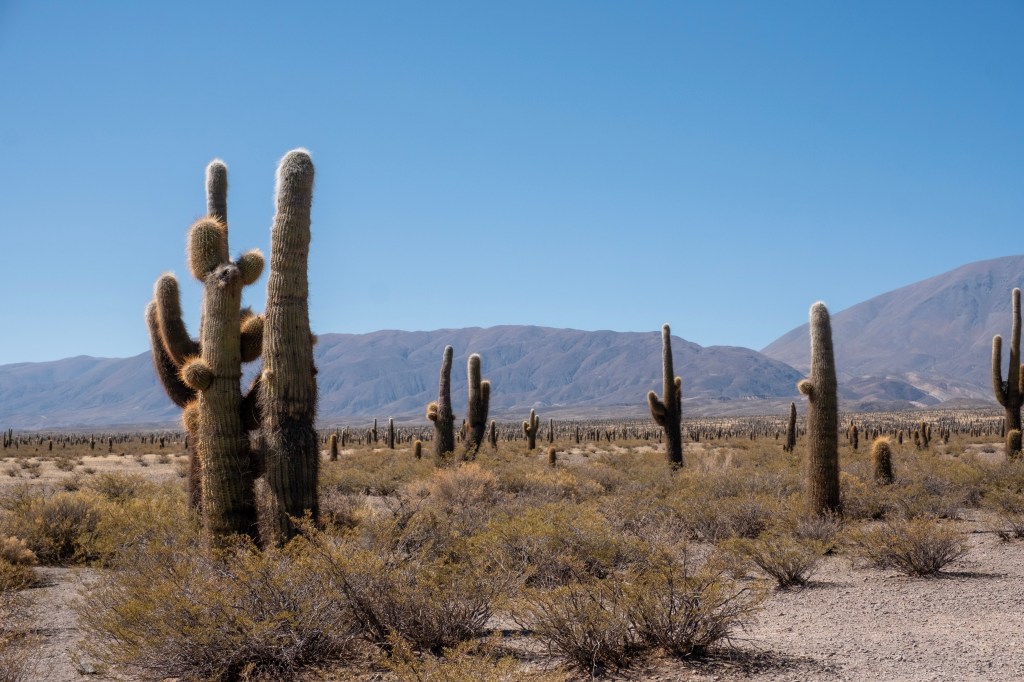 Puis, au bord d’une grande route droite, nous apercevons nos premiers guanacos, camélidés apparentés aux lamas et aux vigognes. Nous traversons le Parque Los Cardones : une grande plaine aride avec une forêt de hauts cactus à perte de vue.
