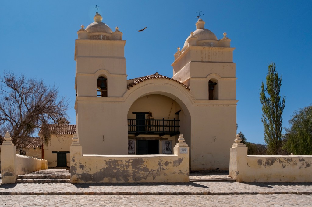 Nous prenons ensuite une portion de la Ruta 40, qui est une des plus grandes routes qui traverse l’Argentine du nord au sud. Ici c’est une petite piste caillouteuse qui descend vers le sud, en suivant le Rio Calchaquí. Nous nous arrêtons à Seclantás, un joli petit village avec une très jolie église.