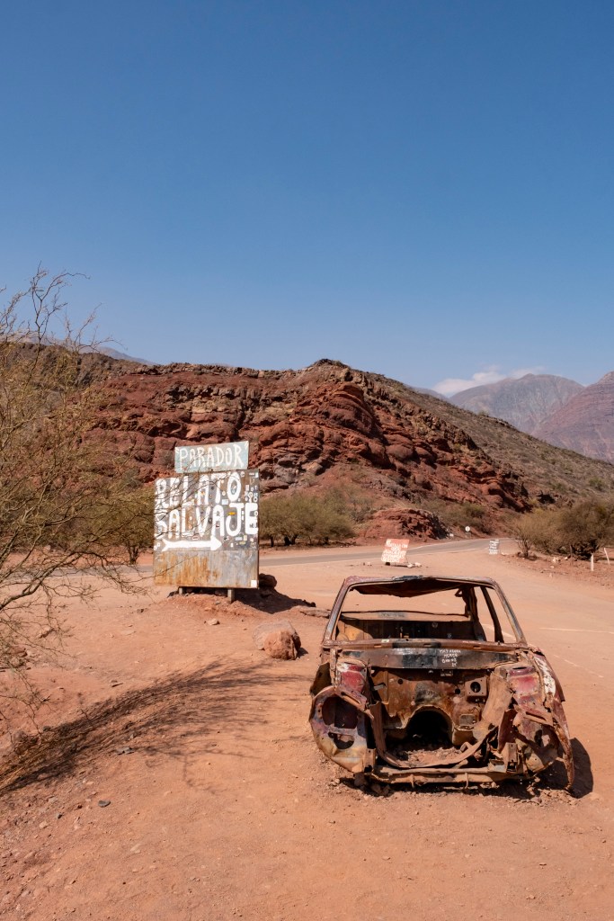 Nous prenons ce matin la route en direction de Salta. Toute la première partie de la route est magnifique, et nous nous arrêtons toutes les 10 minutes aux différents points de vue. Nous traversons un beau canyon de pierre rouge, dans lequel coule une petite rivière entourée d’herbes jaunes.