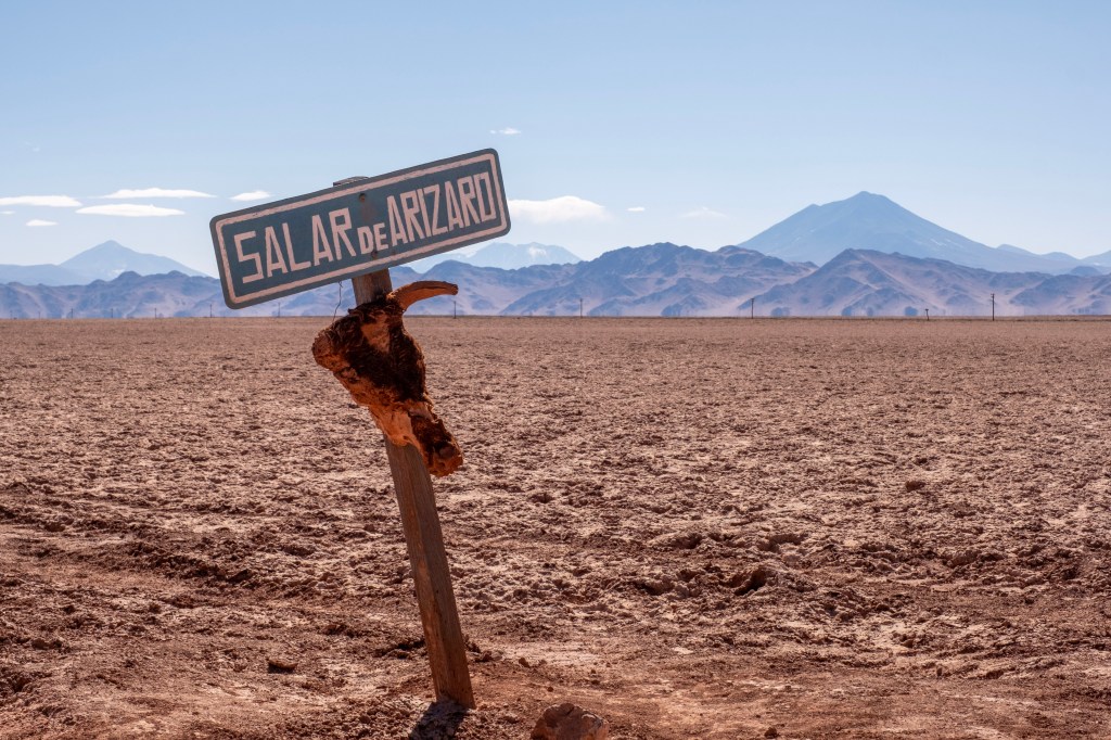 Nous poursuivons la route jusqu’à Tolar Grande, que nous dépassons en direction du fameux Cono de Arita. Pour y arriver, nous traversons pendant plus d’une heure le Salar d’Arizaro, qui ressemble beaucoup à celui d’Atacama. La route est droite et paraît infinie, jusqu’à ce qu’un petit cône fasse son apparition au loin. Il grandit au fur et à mesure de notre approche, et nous arrivons au pied du Cono de Arita, le fameux volcan qui se dresse seul au milieu du Salar.