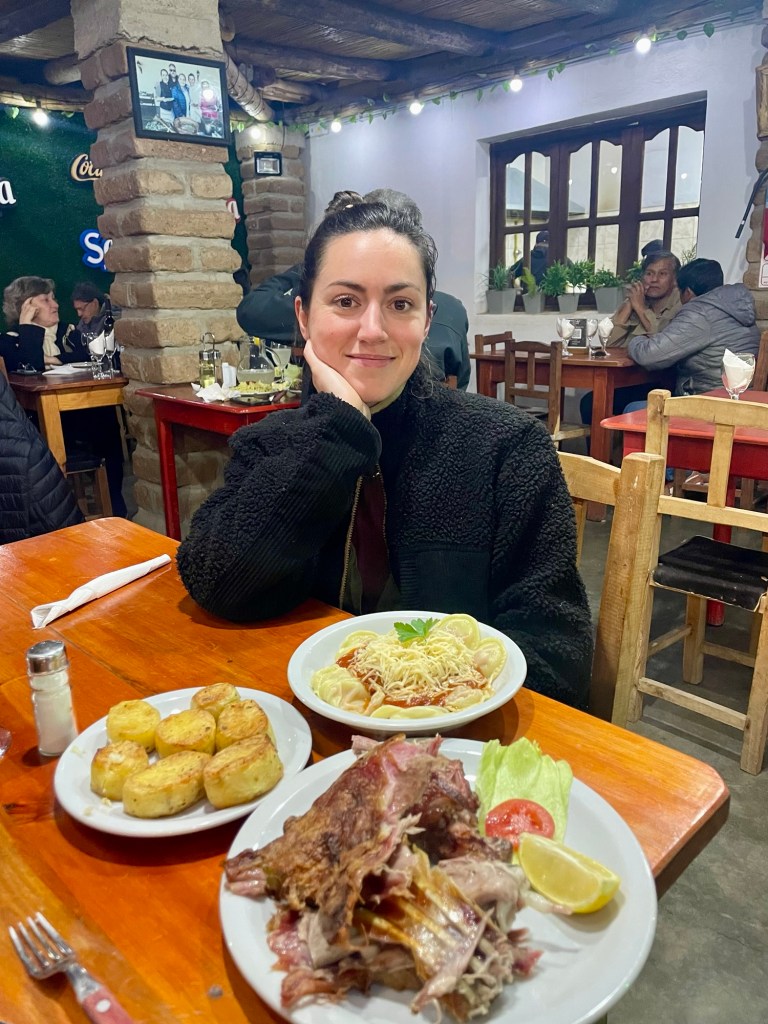 Nous dormons à la Casa de Vero, une charmante petite maison blanche et bleue. Le soir, nous allons dîner chez Mi Favorita : cabri à la parilla et sorrentinos (petits raviolis ronds que l’on trouve partout ici). Le repas est accompagné d’un petit papi argentin qui joue de la musique en live, c’est très sympa.