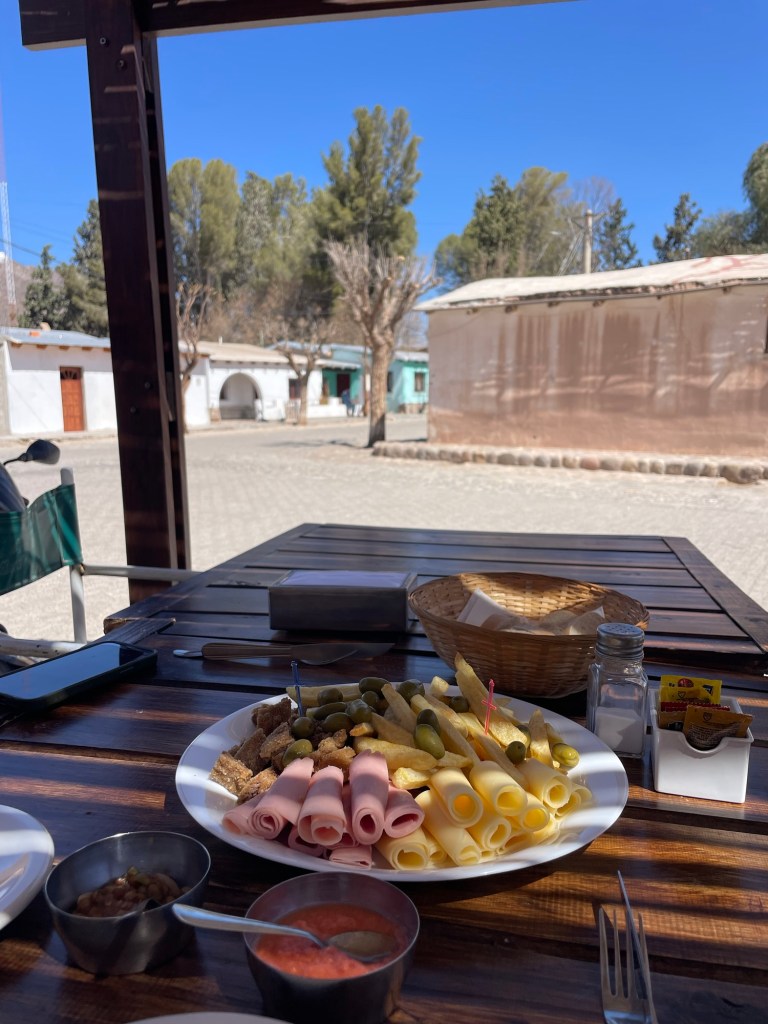 Puis nous roulons sans trop nous arrêter jusqu’à San Antonio de los Cobres, où nous nous arrêtons manger dans un petit restaurant local : Restaurante Los Cardones. Nous y mangeons une délicieuse quiche aux légumes et au quinoa, et reprenons notre route.