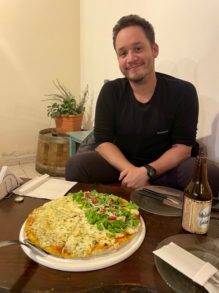 Le soir nous allons dîner chez Pimenton, un petit restaurant un peu à l’écart des attrapes-touristes de la place principale, qui est beaucoup moins cher. Nous partageons une grosse pizza à deux : la pâte est industrielle mais elle est bien garnie et nous fait tout de même plaisir.