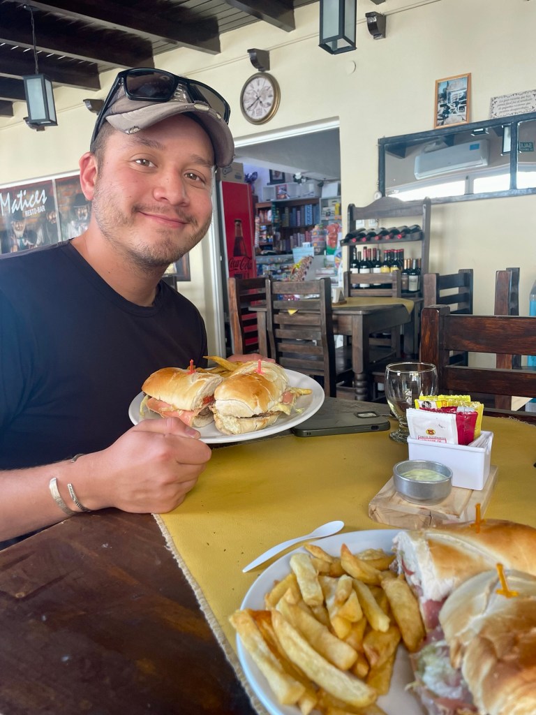 Presque à l’heure du goûter, nous nous arrêtons déjeuner dans la première vraie ville que nous croisons, El Carril. Nous nous attablons au Resto Bar Matices et commandons 2 généreux lomitos (sandwichs chauds garnis de viande, jambon, œuf, fromage et salade). C’était bon et à un prix imbattable !