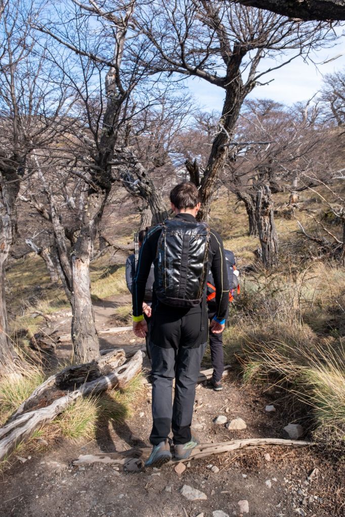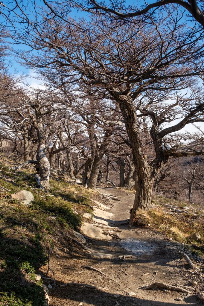 Nous arrivons ensuite à l’intersection avec le sentier classique pour le Fitz Roy. Le groupe oblique à droite pour se diriger vers la lagune au pied du massif, tandis que je tourne à l’opposé pour prendre directement le chemin retour, mon pied me fait trop souffrir.