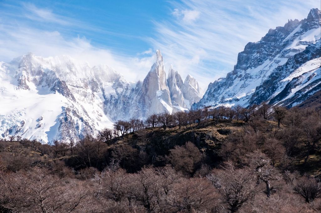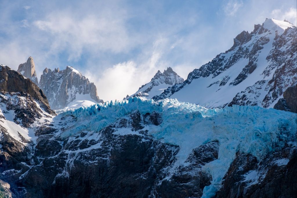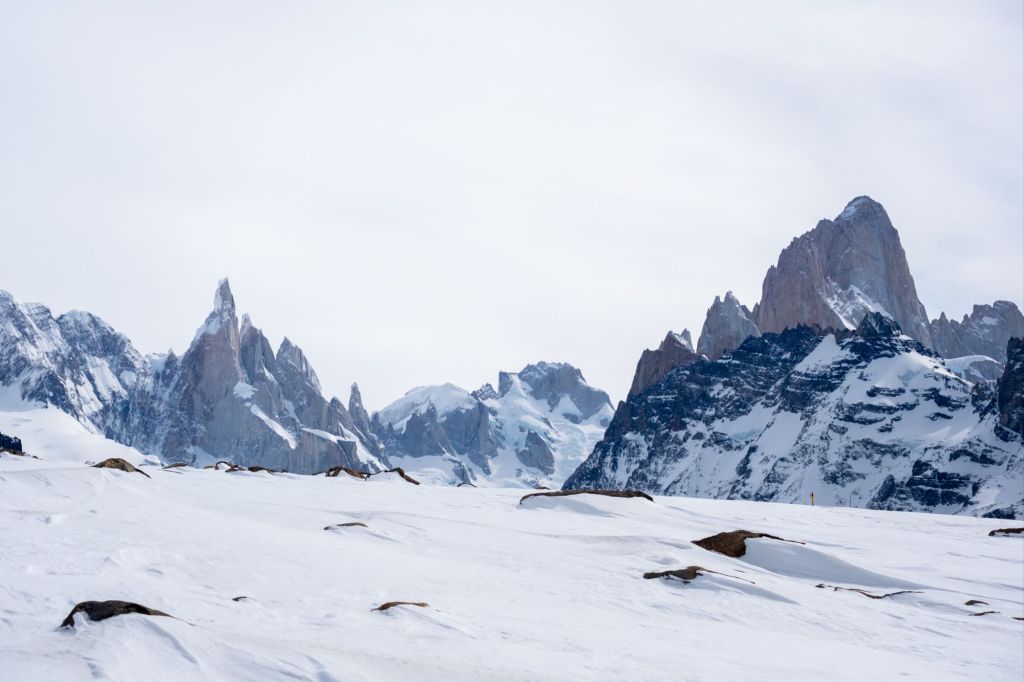 Après plusieurs kilomètres à plat, le sommet du Cerro Torre se dévoile face à nous. Les roches sont très pointues et dépassent de la neige en direction du ciel, c’est magnifique.