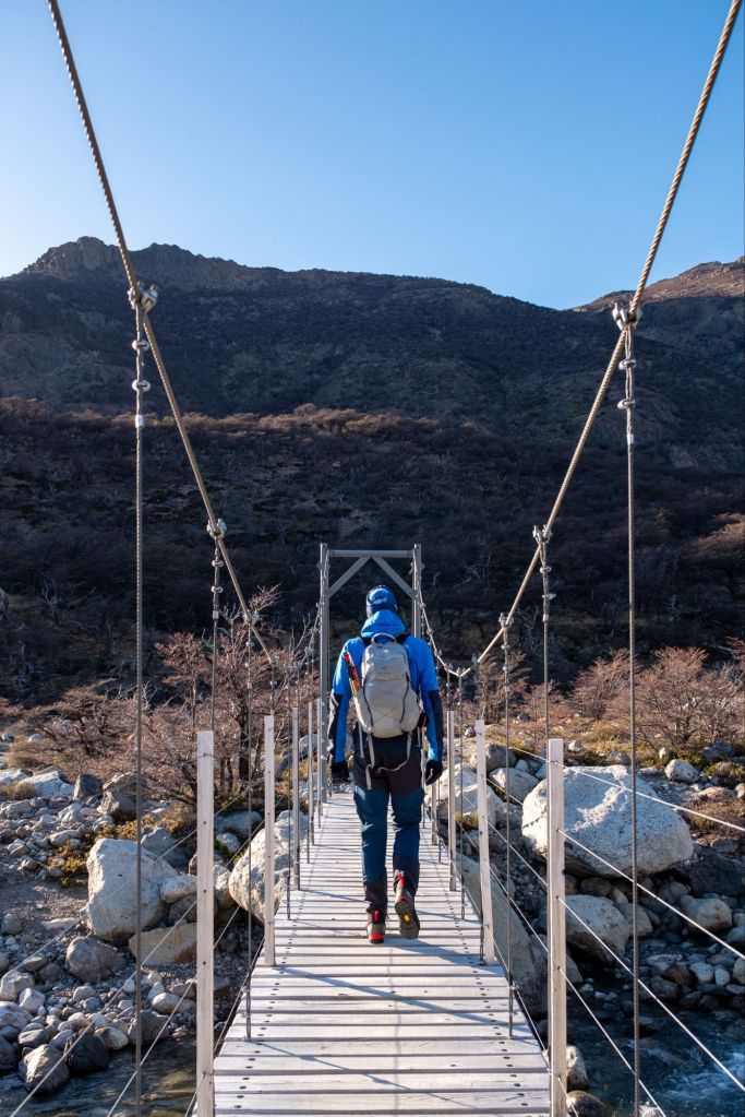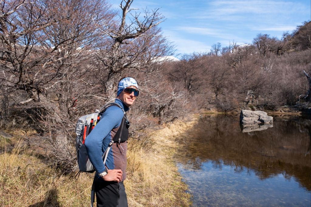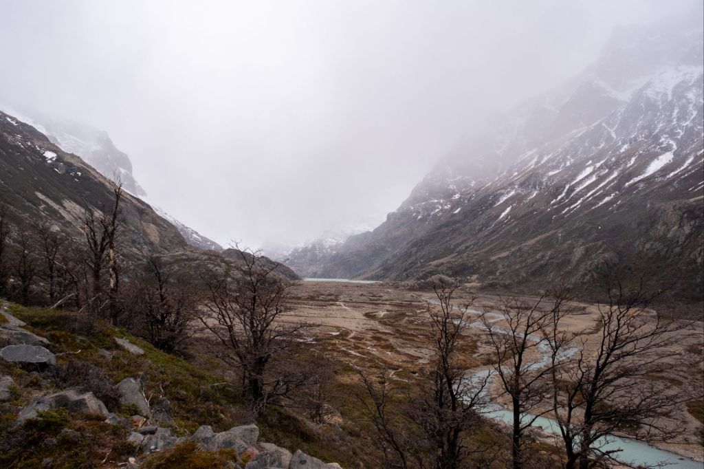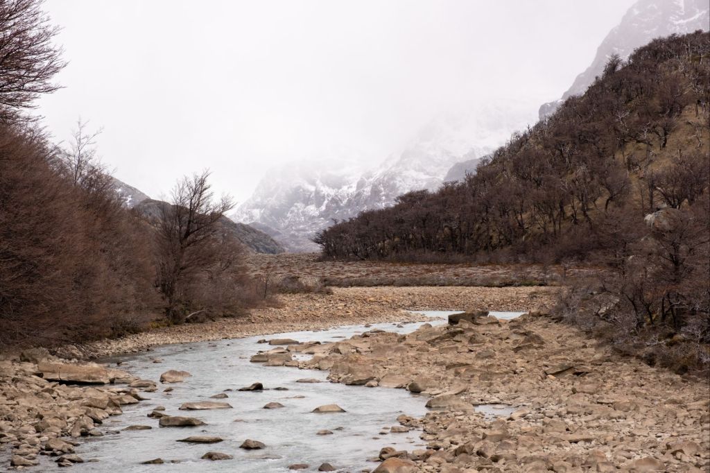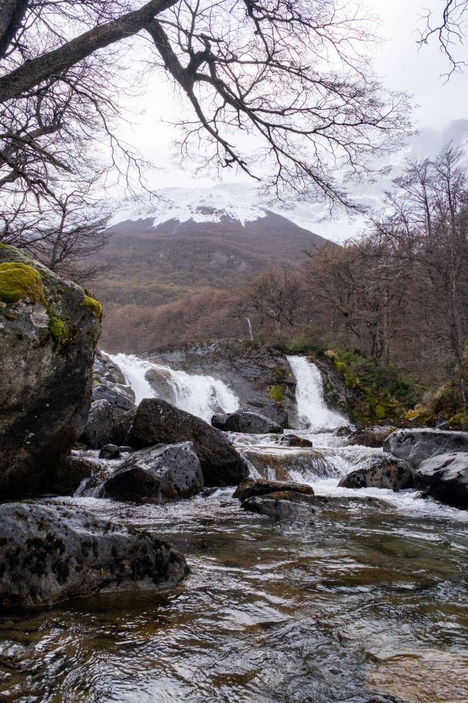 Nous nous faisons déposer par la navette au Rio Electrico, afin de commencer la randonnée pour le Fitz Roy à un endroit différent, et changer de la randonnée que nous avions déjà faite avec Lionel et Marie. Dès les premiers pas je me rends compte que mon talon gauche me fait toujours mal à chaque pas, la journée s’annonce longue. Nous marchons dans une jolie vallée, où coule une rivière.