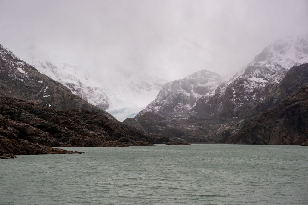 Nous nous arrêtons dans un petit camping, où nous pouvons pique-niquer à l’abri de la pluie, et repartons en direction du Lago Electrico. Nous y arrivons trempés, sous un vent glacial. Nous pouvons apercevoir un petit glacier au loin, de l’autre côté du lac, mais faisons rapidement demi-tour pour retourner nous mettre à l’abri dans la forêt, en attendant notre navette retour.