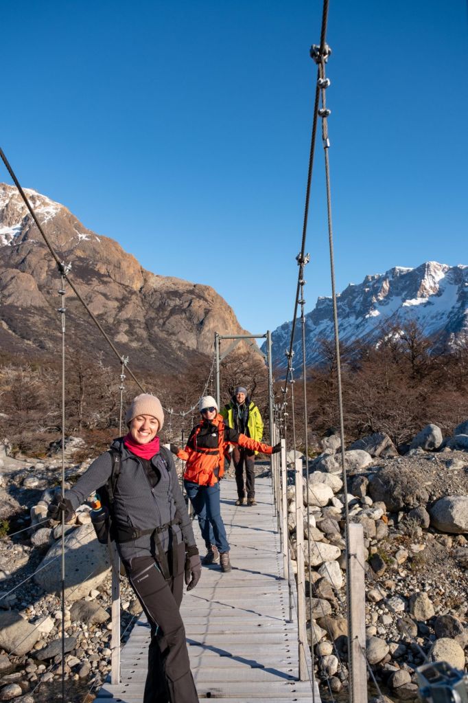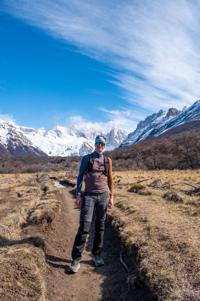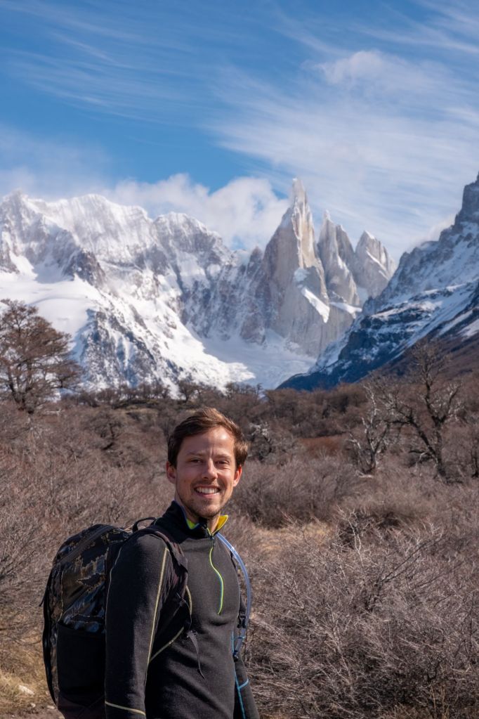 Je reste donc à la maison aujourd’hui pendant que tout le groupe part sur la randonnée Loma del Pliegue Tumbado. Le temps est beau et la vue sur la vallée se dévoile au fur et à mesure de la montée. C’est l’un des seuls endroits où l’on peut voir le Fitz Roy et le Cerro Torre en même temps !