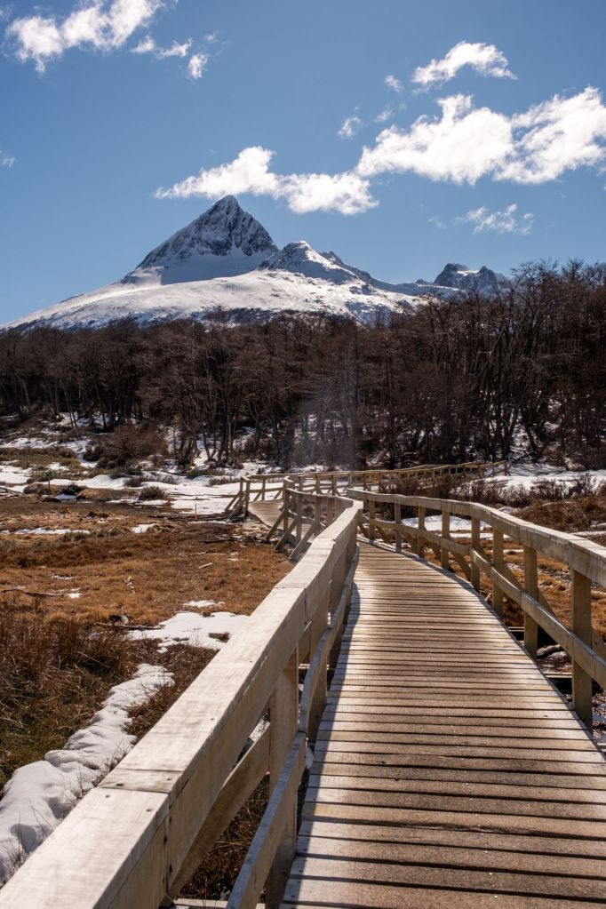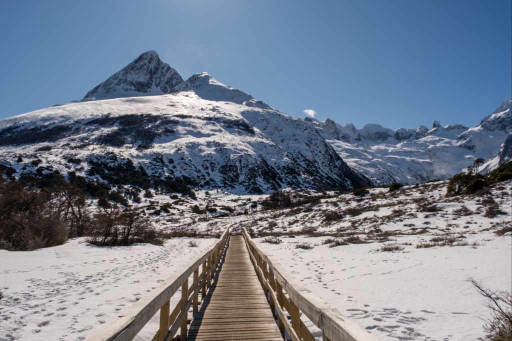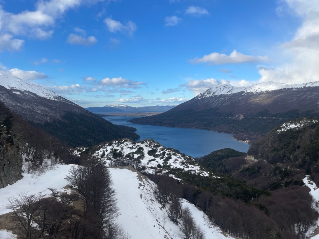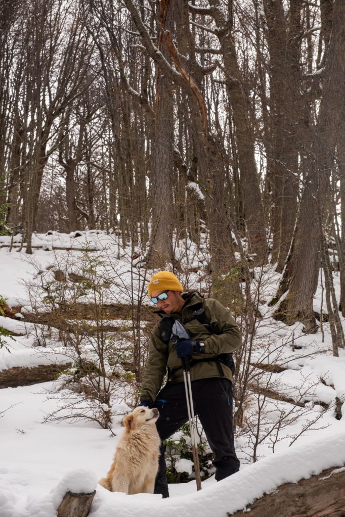 Nous rentrons ensuite par le même sentier, sous un magnifique soleil qui illumine le chemin enneigé, et Miguel nous ramène à Ushuaïa.