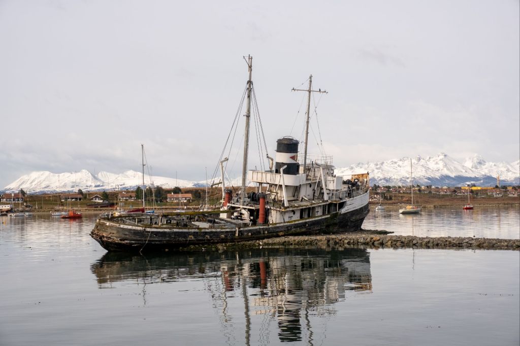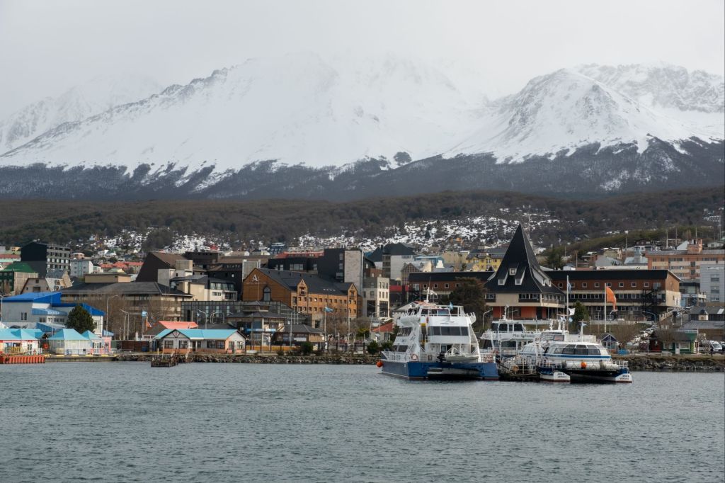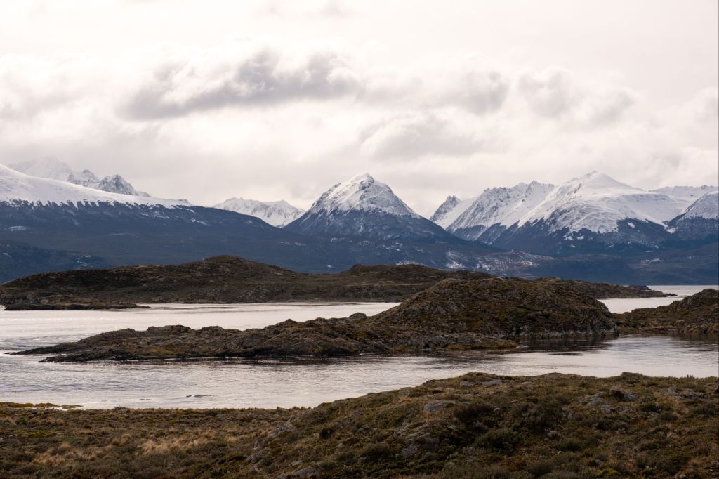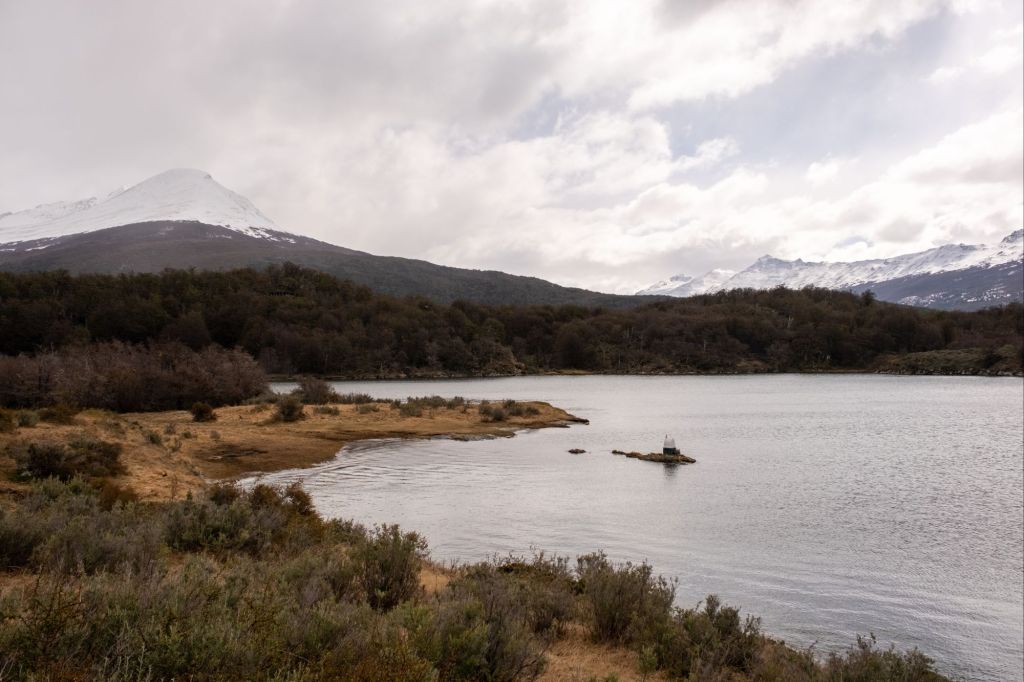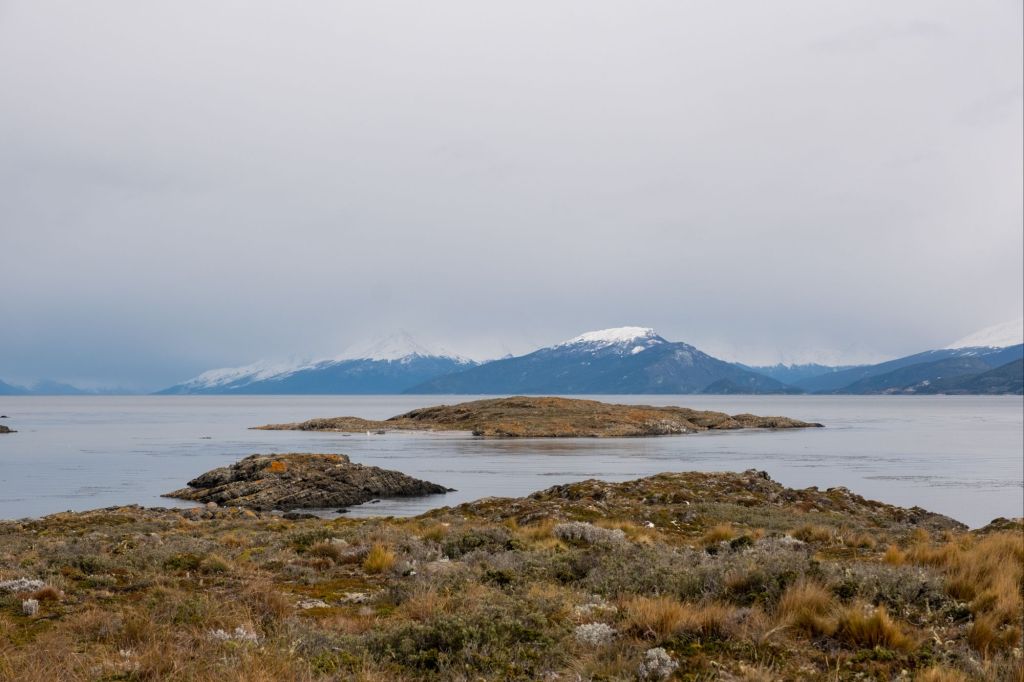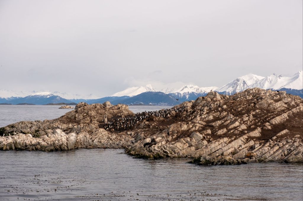 Un peu plus loin, le bateau nous débarque sur une minuscule île. Le paysage autour est très beau, avec les montagnes enneigées qui encadrent la mer, et la petite ville d’Ushuaïa avec ses maisons colorées.