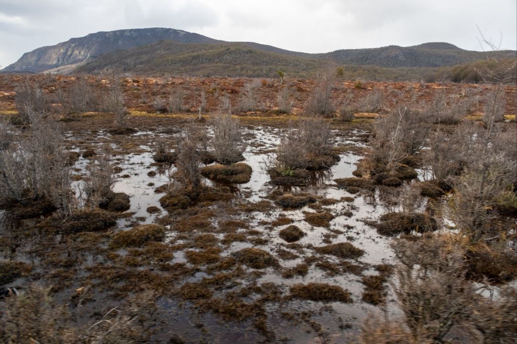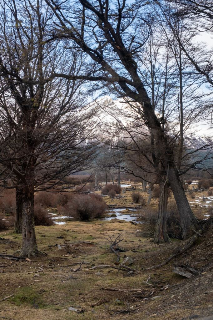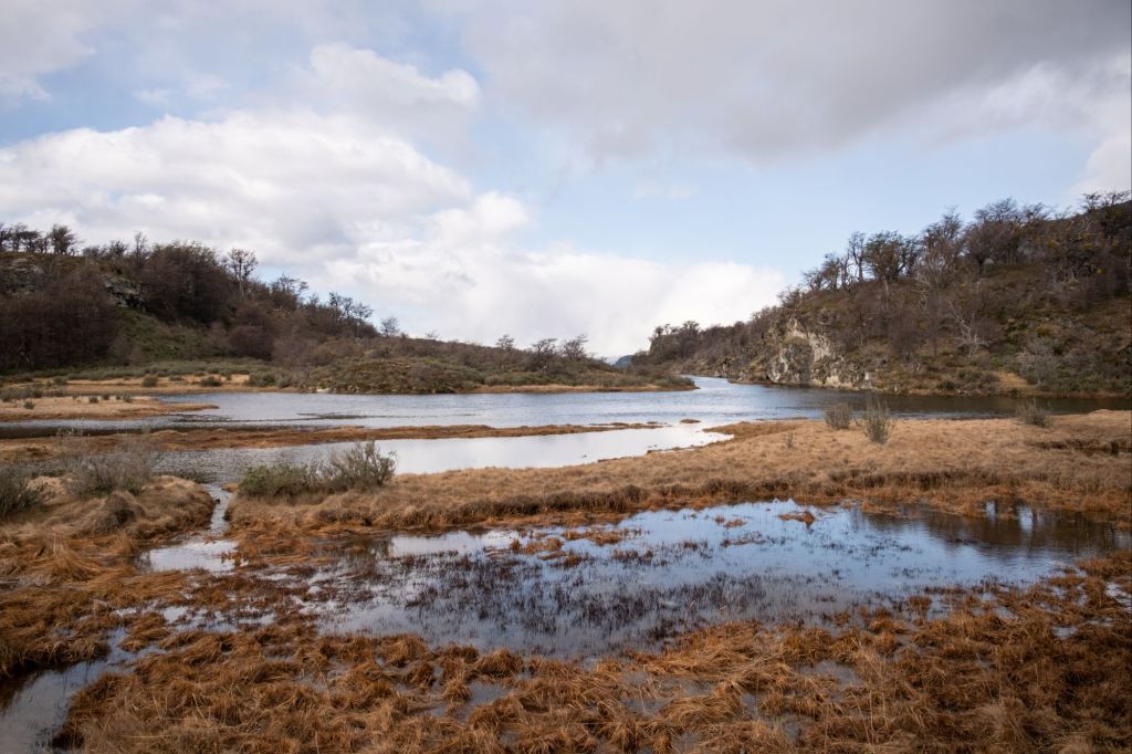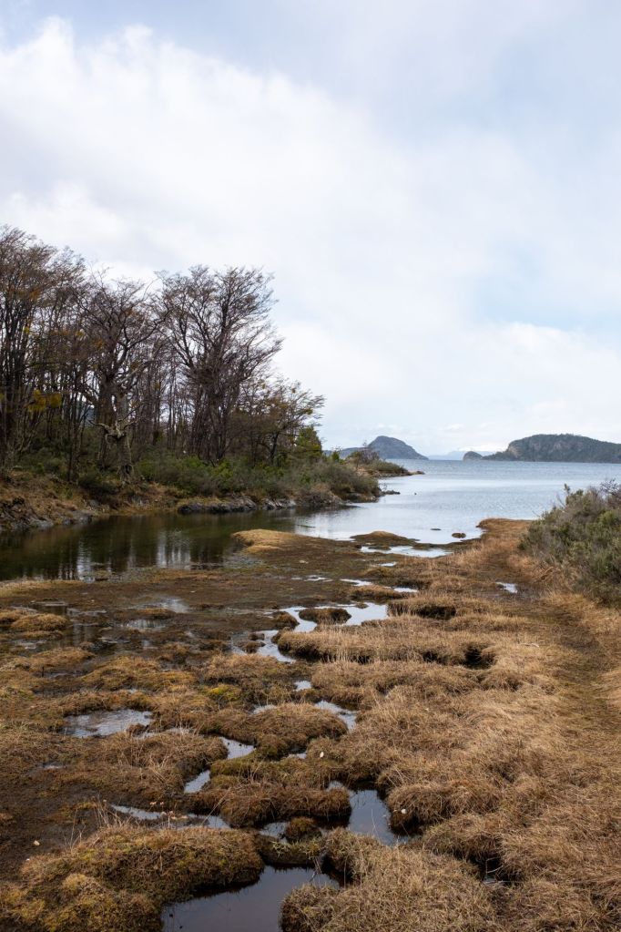 Après cet interlude un peu touristique à notre goût, nous nous faisons déposer au fond du parc afin de le découvrir à pieds. C’est l’endroit où s’arrête la Ruta 3, une des grandes routes qui traverse le pays du nord au sud. Il y a plusieurs petits sentiers tantôt au bord de la mer, tantôt au bord d’un lac. L’herbe est jaune et les rares arbres sont dépourvus de feuilles. Nous nous promenons au milieu de ce paysage de bout du monde, l’ambiance est unique.
